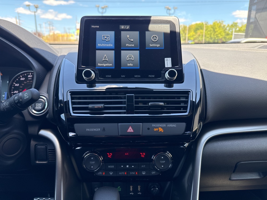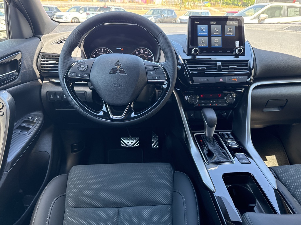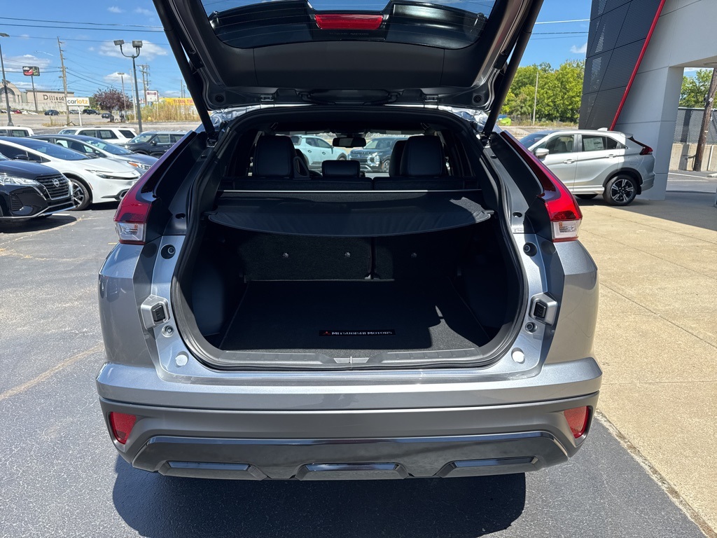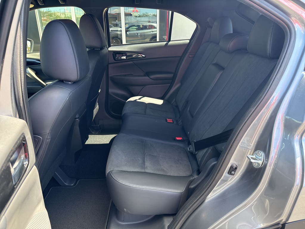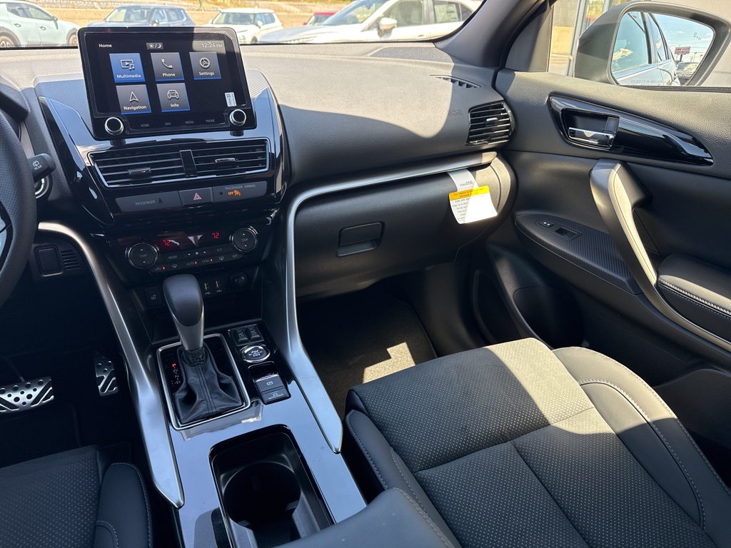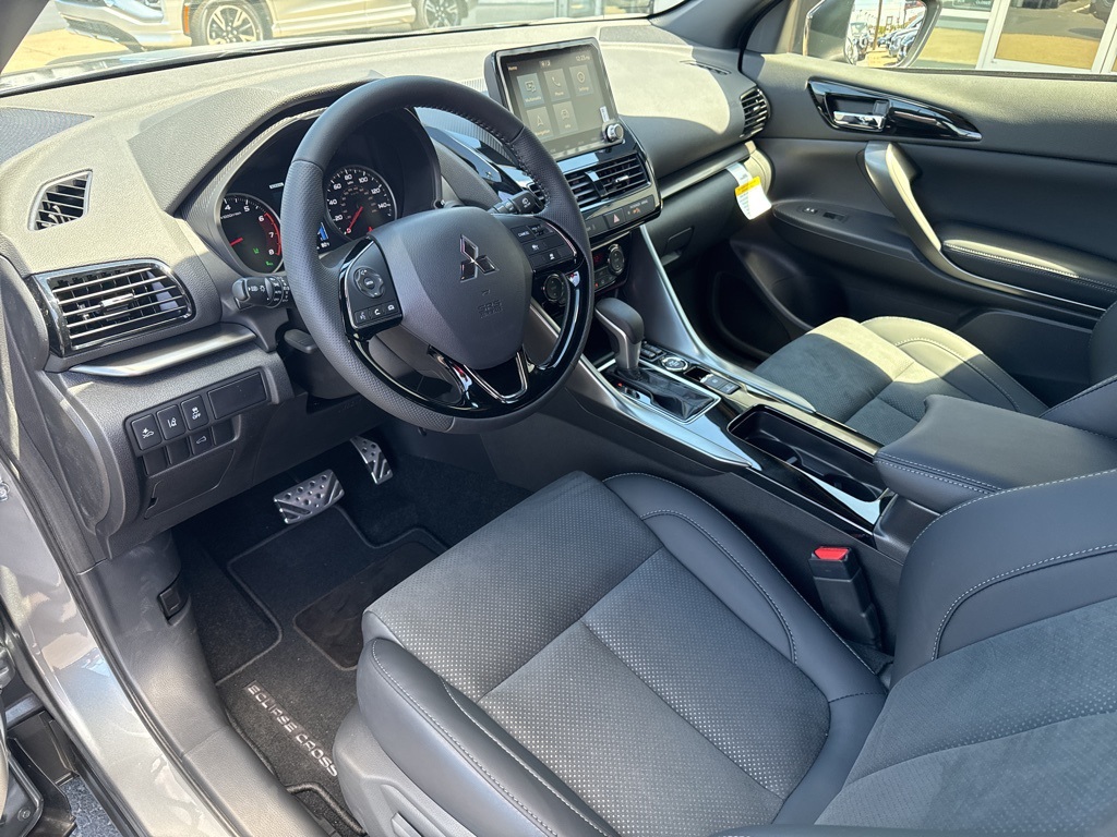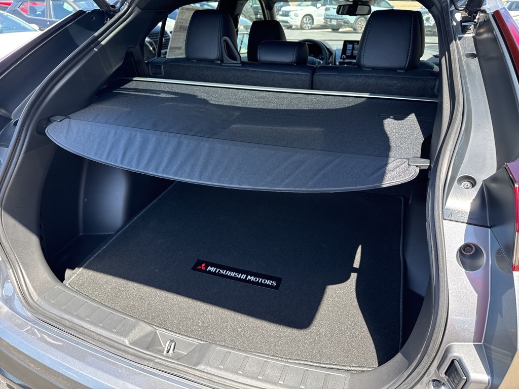 Gray 2025 Mitsubishi Eclipse Cross Black Edition 4WD CVT 1.5L I4 DI Turbocharged DOHC 16V LEV3-ULEV70 152hp 4-Wheel Disc Brakes, 6 Speakers, ABS brakes, Air Conditioning, Alloy wheels, AM/FM radio: SiriusXM, Android Auto & Apple CarPlay, Auto High-beam Headlights, Auto-dimming Rear-View mirror, Automatic temperature control, Brake assist, Bumpers: body-color, Driver door bin, Driver vanity mirror, Dual front impact airbags, Dual front side impact airbags, Electronic Stability Control, Emergency communication system, Exterior Parking Camera Rear, Four wheel independent suspension, Front anti-roll bar, Front Bucket Seats, Front Center Armrest, Front dual zone A/C, Front fog lights, Front reading lights, Heated door mirrors, Heated Front Bucket Seats, Heated front seats, Illuminated entry, Knee airbag, Low tire pressure warning, Navigation System, Occupant sensing airbag, Outside temperature display, Overhead airbag, Overhead console, Panic alarm, Passenger door bin, Passenger vanity mirror, Power door mirrors, Power driver seat, Power Liftgate, Power steering, Power windows, Radio data system, Radio: AM/FM 8.0" Nav System w/Smartphone-Link, Rain sensing wipers, Rear anti-roll bar, Rear seat center armrest, Rear window defroster, Rear window wiper, Remote keyless entry, Security system, Speed control, Speed-sensing steering, Split folding rear seat, Spoiler, Steering wheel mounted audio controls, Tachometer, Telescoping steering wheel, Tilt steering wheel, Traction control, Trip computer, Turn signal indicator mirrors, Variably intermittent wipers.25/26 City/Highway MPG