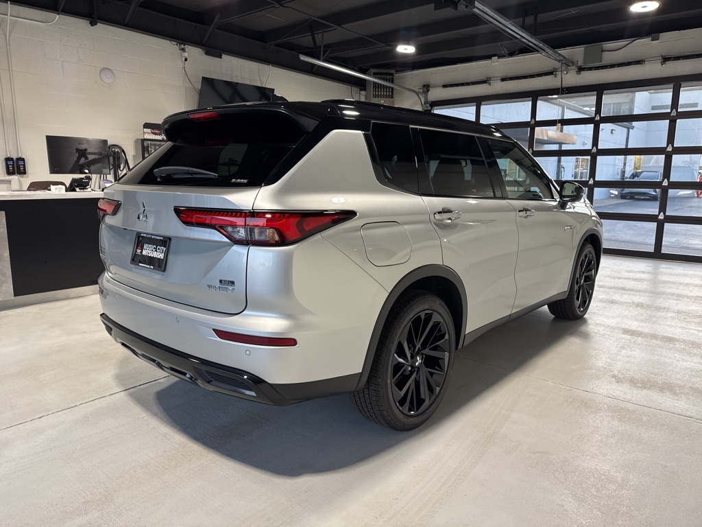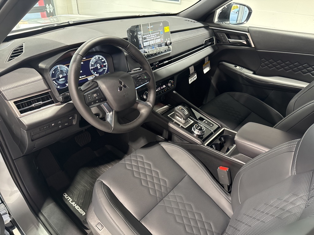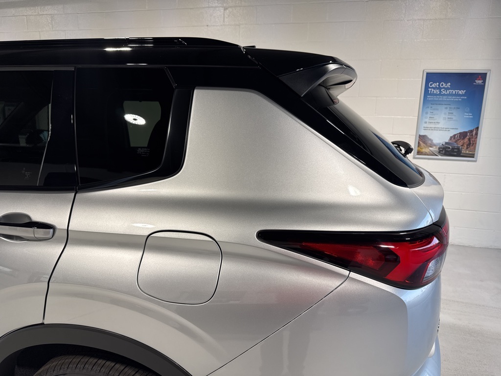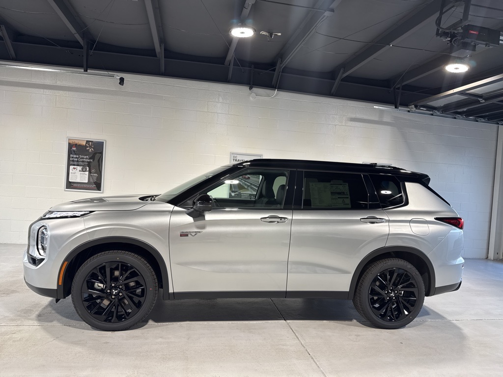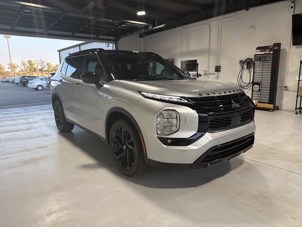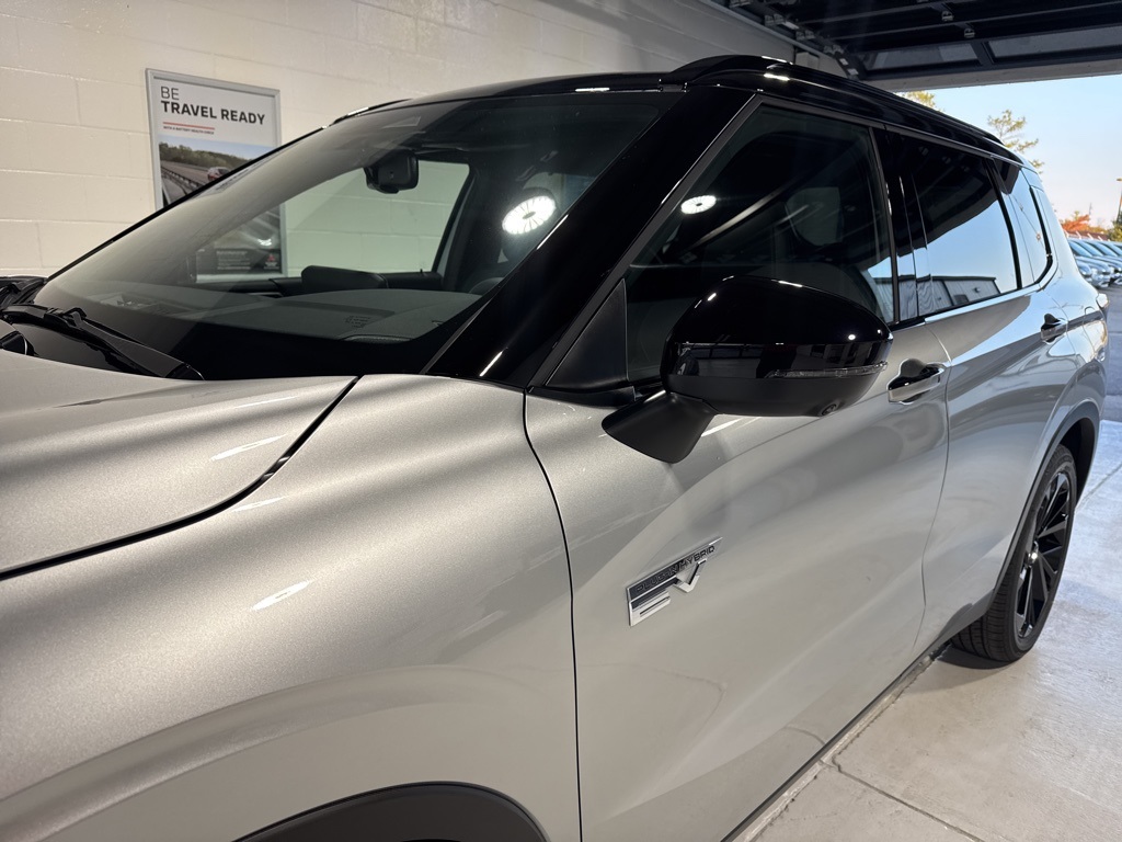 Silver 2025 Mitsubishi Outlander PHEV SEL Black Edition 4WD 1-Speed Automatic 2.4L 4-Cylinder DI DOHC 2.4L 4-Cylinder DI DOHC, 3rd row seats: split-bench, 4-Wheel Disc Brakes, ABS brakes, Air Conditioning, Alloy wheels, AM/FM radio: SiriusXM, Android Auto & Apple CarPlay, Auto High-beam Headlights, Auto-dimming Rear-View mirror, Automatic temperature control, Brake assist, Bumpers: body-color, Driver door bin, Driver vanity mirror, Dual front impact airbags, Dual front side impact airbags, Electronic Stability Control, Emergency communication system: Mitsubishi Connect w/ 24-month trial, Four wheel independent suspension, Front anti-roll bar, Front Bucket Seats, Front Center Armrest w/Storage, Front dual zone A/C, Front fog lights, Front reading lights, Fully automatic headlights, Headlight cleaning, Heated door mirrors, Heated Front Bucket Seats, Heated front seats, Heated rear seats, Heated steering wheel, Illuminated entry, Knee airbag, Leather Shift Knob, Leather steering wheel, Low tire pressure warning, Memory seat, Navigation System, Occupant sensing airbag, Outside temperature display, Overhead airbag, Overhead console, Panic alarm, Passenger door bin, Passenger vanity mirror, Power door mirrors, Power driver seat, Power Liftgate, Power moonroof, Power passenger seat, Power steering, Power windows, Radio data system, Radio: AM/FM 9" Smartphone Link Display Audio, Rain sensing wipers, Rear air conditioning, Rear anti-roll bar, Rear seat center armrest, Rear side impact airbag, Rear window defroster, Rear window wiper, Reclining 3rd row seat, Remote keyless entry, Security system, Speed control, Speed-Sensitive Wipers, Split folding rear seat, Spoiler, Steering wheel mounted audio controls, Tachometer, Telescoping steering wheel, Tilt steering wheel, Traction control, Trip computer, Turn signal indicator mirrors, Variably intermittent wipers, 2.4L 4-Cylinder DI DOHC.