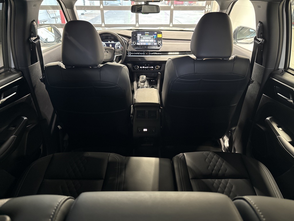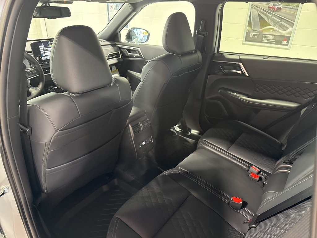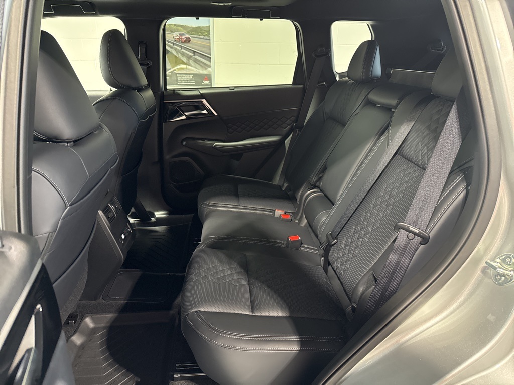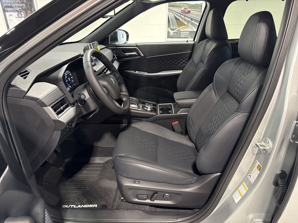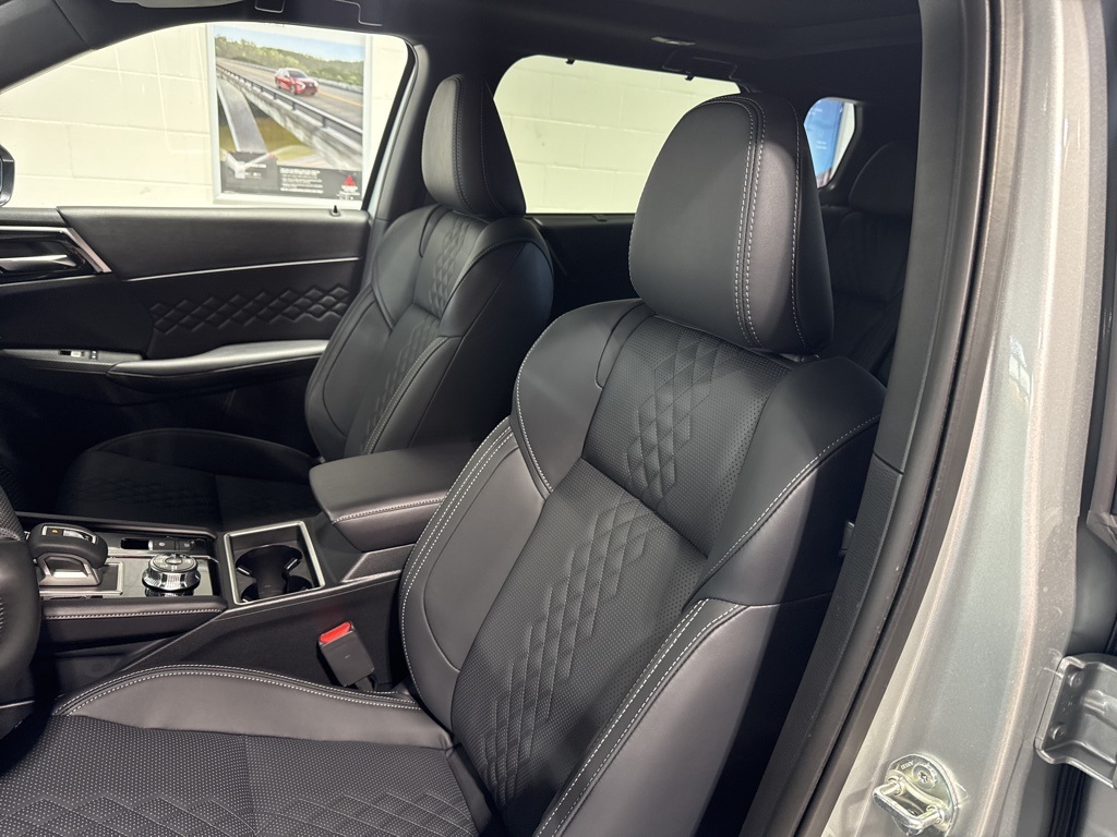 Silver 2025 Mitsubishi Outlander PHEV SEL Black Edition 4WD 1-Speed Automatic 2.4L 4-Cylinder DI DOHC 2.4L 4-Cylinder DI DOHC, 3rd row seats: split-bench, 4-Wheel Disc Brakes, ABS brakes, Air Conditioning, Alloy wheels, AM/FM radio: SiriusXM, Android Auto & Apple CarPlay, Auto High-beam Headlights, Auto-dimming Rear-View mirror, Automatic temperature control, Brake assist, Bumpers: body-color, Driver door bin, Driver vanity mirror, Dual front impact airbags, Dual front side impact airbags, Electronic Stability Control, Emergency communication system: Mitsubishi Connect w/ 24-month trial, Four wheel independent suspension, Front anti-roll bar, Front Bucket Seats, Front Center Armrest w/Storage, Front dual zone A/C, Front fog lights, Front reading lights, Fully automatic headlights, Headlight cleaning, Heated door mirrors, Heated Front Bucket Seats, Heated front seats, Heated rear seats, Heated steering wheel, Illuminated entry, Knee airbag, Leather Shift Knob, Leather steering wheel, Low tire pressure warning, Memory seat, Navigation System, Occupant sensing airbag, Outside temperature display, Overhead airbag, Overhead console, Panic alarm, Passenger door bin, Passenger vanity mirror, Power door mirrors, Power driver seat, Power Liftgate, Power moonroof, Power passenger seat, Power steering, Power windows, Radio data system, Radio: AM/FM 9" Smartphone Link Display Audio, Rain sensing wipers, Rear air conditioning, Rear anti-roll bar, Rear seat center armrest, Rear side impact airbag, Rear window defroster, Rear window wiper, Reclining 3rd row seat, Remote keyless entry, Security system, Speed control, Speed-Sensitive Wipers, Split folding rear seat, Spoiler, Steering wheel mounted audio controls, Tachometer, Telescoping steering wheel, Tilt steering wheel, Traction control, Trip computer, Turn signal indicator mirrors, Variably intermittent wipers, 2.4L 4-Cylinder DI DOHC.