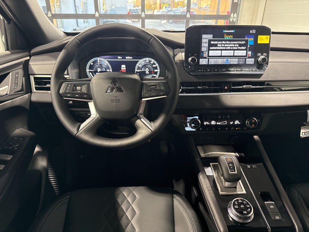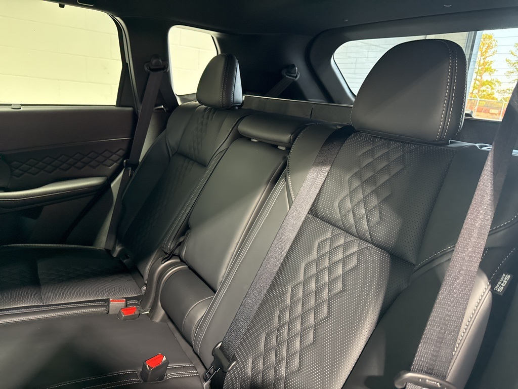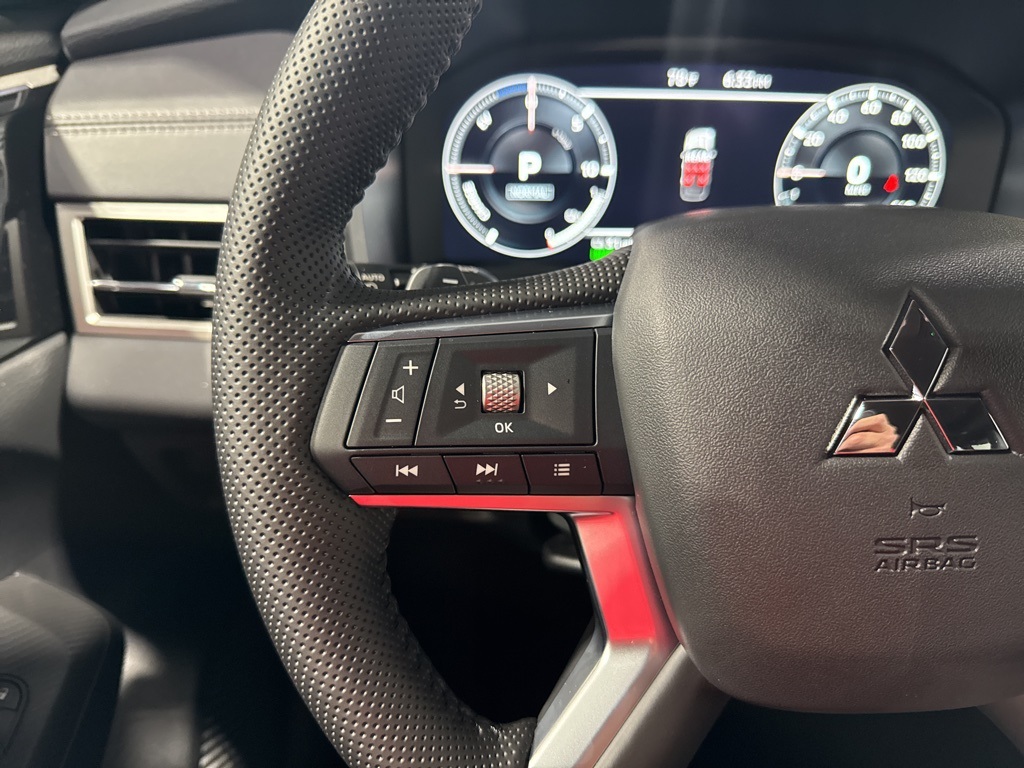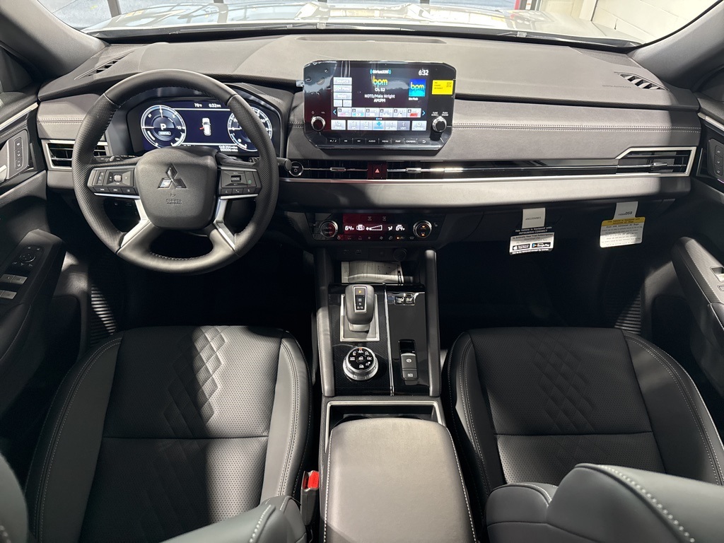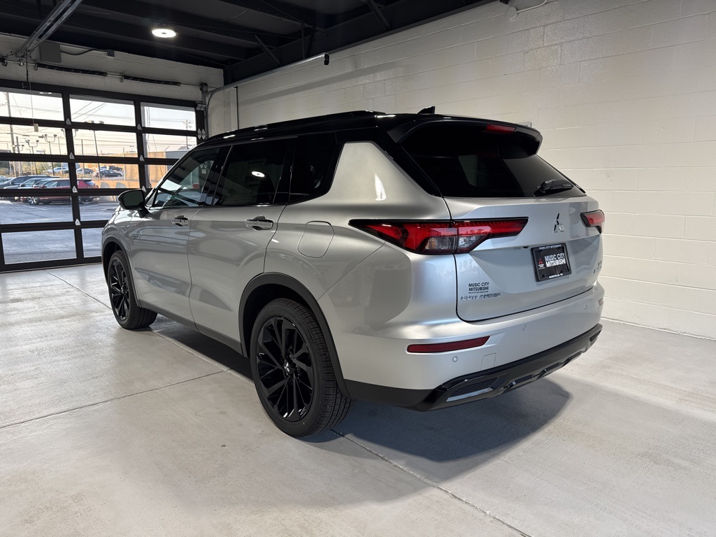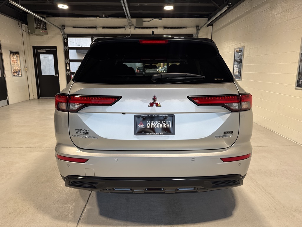 Silver 2025 Mitsubishi Outlander PHEV SEL Black Edition 4WD 1-Speed Automatic 2.4L 4-Cylinder DI DOHC 2.4L 4-Cylinder DI DOHC, 3rd row seats: split-bench, 4-Wheel Disc Brakes, ABS brakes, Air Conditioning, Alloy wheels, AM/FM radio: SiriusXM, Android Auto & Apple CarPlay, Auto High-beam Headlights, Auto-dimming Rear-View mirror, Automatic temperature control, Brake assist, Bumpers: body-color, Driver door bin, Driver vanity mirror, Dual front impact airbags, Dual front side impact airbags, Electronic Stability Control, Emergency communication system: Mitsubishi Connect w/ 24-month trial, Four wheel independent suspension, Front anti-roll bar, Front Bucket Seats, Front Center Armrest w/Storage, Front dual zone A/C, Front fog lights, Front reading lights, Fully automatic headlights, Headlight cleaning, Heated door mirrors, Heated Front Bucket Seats, Heated front seats, Heated rear seats, Heated steering wheel, Illuminated entry, Knee airbag, Leather Shift Knob, Leather steering wheel, Low tire pressure warning, Memory seat, Navigation System, Occupant sensing airbag, Outside temperature display, Overhead airbag, Overhead console, Panic alarm, Passenger door bin, Passenger vanity mirror, Power door mirrors, Power driver seat, Power Liftgate, Power moonroof, Power passenger seat, Power steering, Power windows, Radio data system, Radio: AM/FM 9" Smartphone Link Display Audio, Rain sensing wipers, Rear air conditioning, Rear anti-roll bar, Rear seat center armrest, Rear side impact airbag, Rear window defroster, Rear window wiper, Reclining 3rd row seat, Remote keyless entry, Security system, Speed control, Speed-Sensitive Wipers, Split folding rear seat, Spoiler, Steering wheel mounted audio controls, Tachometer, Telescoping steering wheel, Tilt steering wheel, Traction control, Trip computer, Turn signal indicator mirrors, Variably intermittent wipers, 2.4L 4-Cylinder DI DOHC.