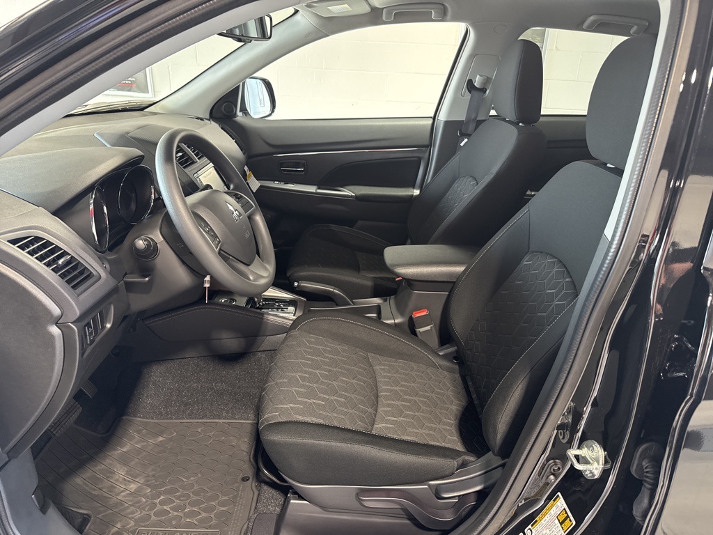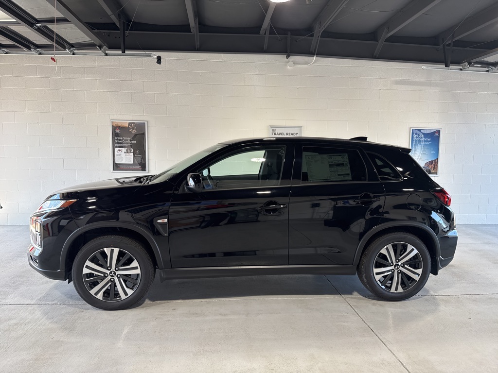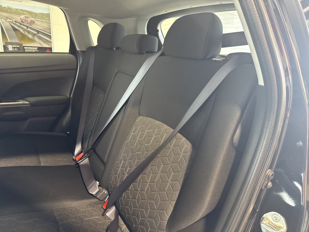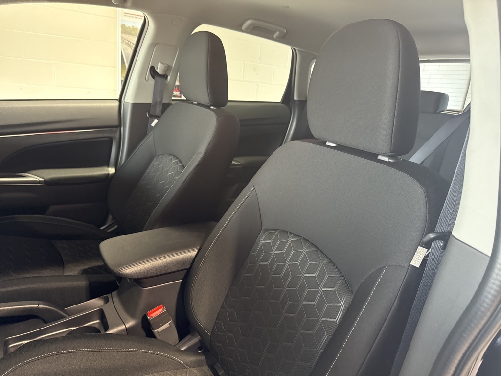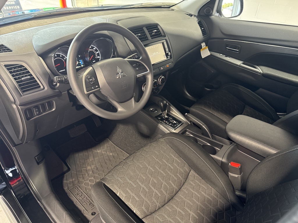Black 2025 Mitsubishi Outlander Sport 2.0 ES 4WD CVT 2.0L I4 SMPI DOHC 16V LEV3-ULEV70 148hp 4WD, 4-Wheel Disc Brakes, ABS brakes, Air Conditioning, Auto High-beam Headlights, Auto-dimming Rear-View mirror, Automatic temperature control, Brake assist, Bumpers: body-color, Delay-off headlights, Driver door bin, Driver vanity mirror, Dual front impact airbags, Dual front side impact airbags, Electronic Stability Control, Exterior Parking Camera Rear, Four wheel independent suspension, Front anti-roll bar, Front Bucket Seats, Front Center Armrest, Front reading lights, Fully automatic headlights, Heated door mirrors, Illuminated entry, Knee airbag, Low tire pressure warning, Occupant sensing airbag, Outside temperature display, Overhead airbag, Panic alarm, Passenger door bin, Passenger vanity mirror, Power door mirrors, Power steering, Power windows, Radio data system, Rain sensing wipers, Rear anti-roll bar, Rear seat center armrest, Rear window defroster, Rear window wiper, Remote keyless entry, Security system, Speed control, Speed-sensing steering, Split folding rear seat, Spoiler, Steering wheel mounted audio controls, Tachometer, Telescoping steering wheel, Tilt steering wheel, Traction control, Trip computer, Variably intermittent wipers, 4WD.23/29 City/Highway MPG