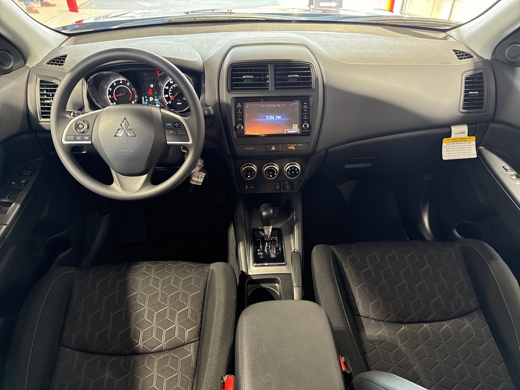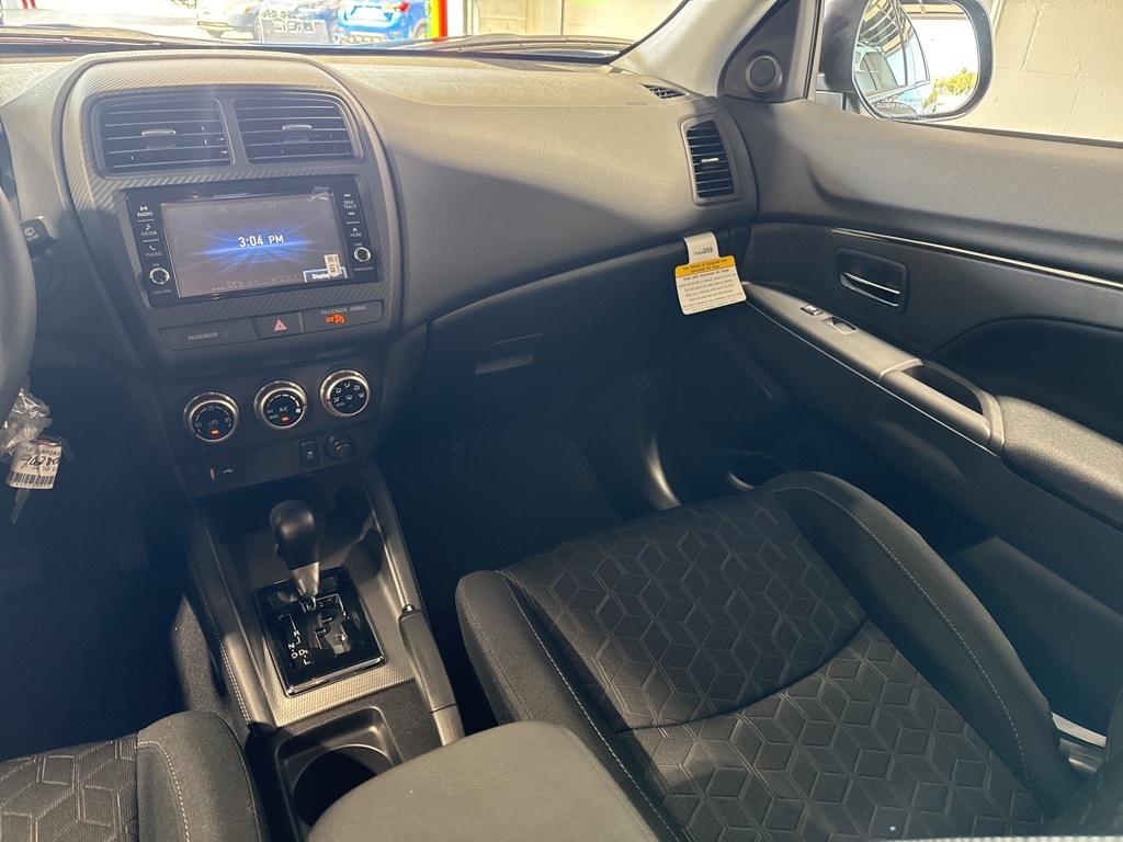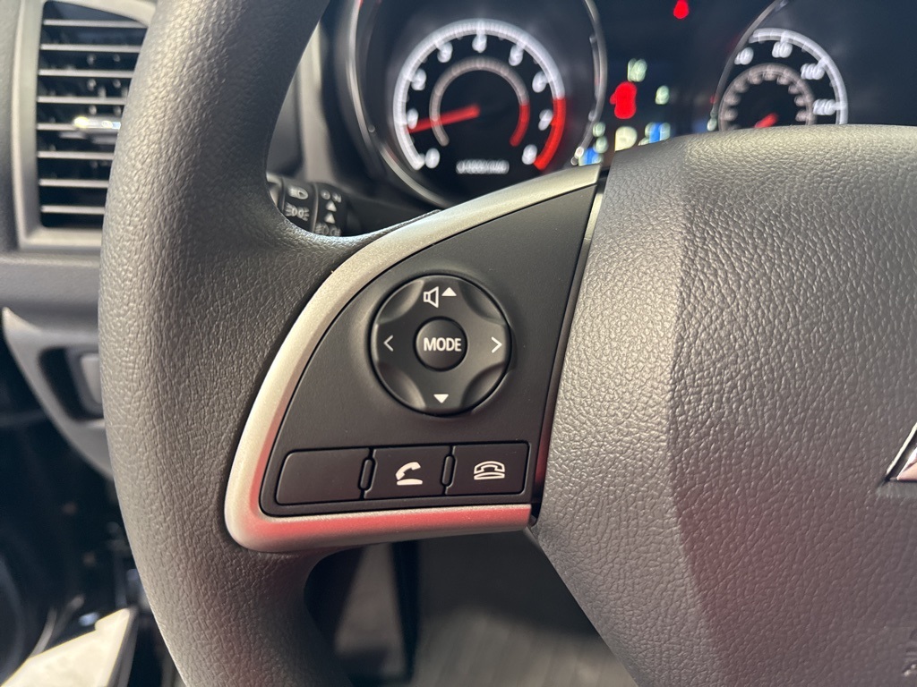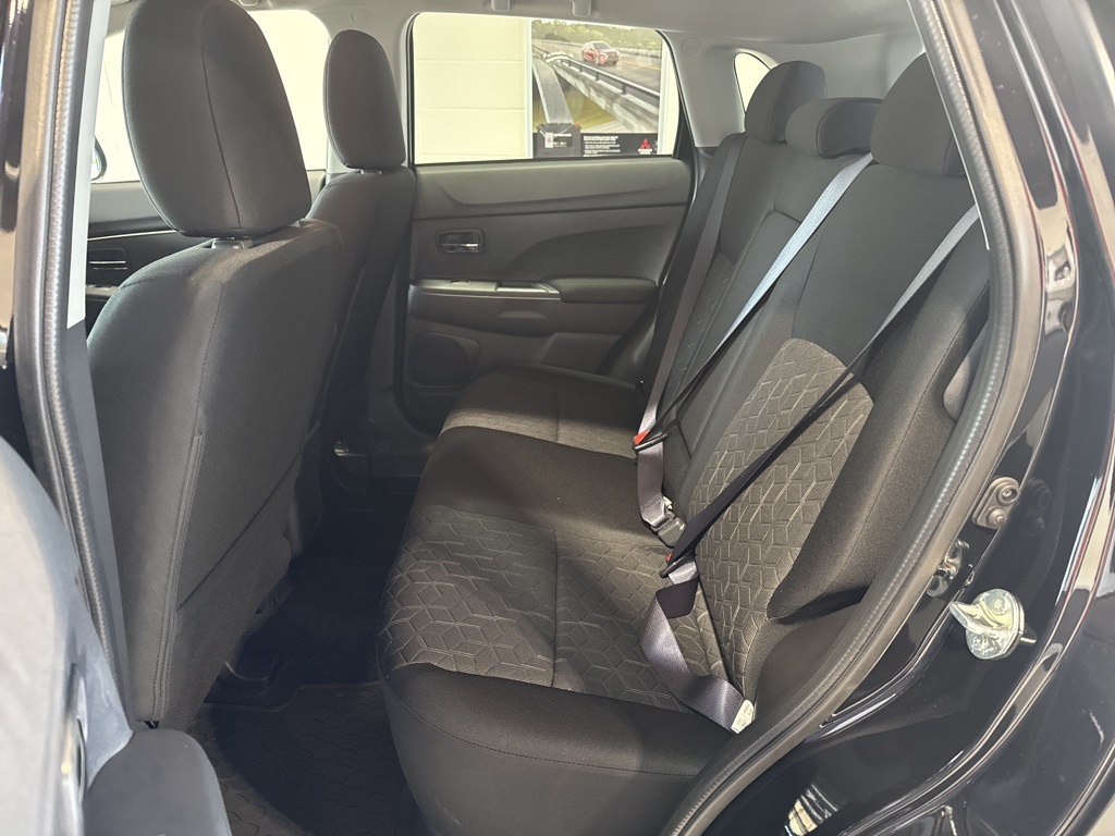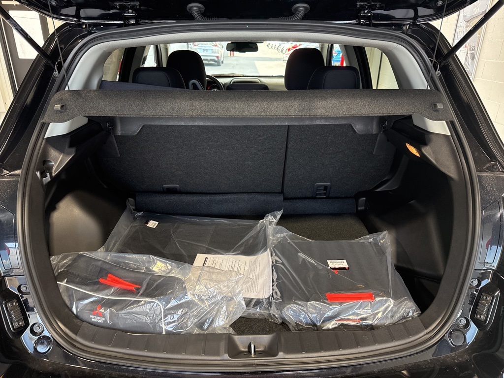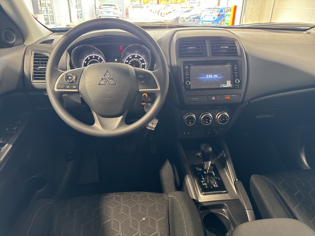 Black 2025 Mitsubishi Outlander Sport 2.0 ES 4WD CVT 2.0L I4 SMPI DOHC 16V LEV3-ULEV70 148hp 4WD, 4-Wheel Disc Brakes, ABS brakes, Air Conditioning, Auto High-beam Headlights, Auto-dimming Rear-View mirror, Automatic temperature control, Brake assist, Bumpers: body-color, Delay-off headlights, Driver door bin, Driver vanity mirror, Dual front impact airbags, Dual front side impact airbags, Electronic Stability Control, Exterior Parking Camera Rear, Four wheel independent suspension, Front anti-roll bar, Front Bucket Seats, Front Center Armrest, Front reading lights, Fully automatic headlights, Heated door mirrors, Illuminated entry, Knee airbag, Low tire pressure warning, Occupant sensing airbag, Outside temperature display, Overhead airbag, Panic alarm, Passenger door bin, Passenger vanity mirror, Power door mirrors, Power steering, Power windows, Radio data system, Rain sensing wipers, Rear anti-roll bar, Rear seat center armrest, Rear window defroster, Rear window wiper, Remote keyless entry, Security system, Speed control, Speed-sensing steering, Split folding rear seat, Spoiler, Steering wheel mounted audio controls, Tachometer, Telescoping steering wheel, Tilt steering wheel, Traction control, Trip computer, Variably intermittent wipers, 4WD.23/29 City/Highway MPG