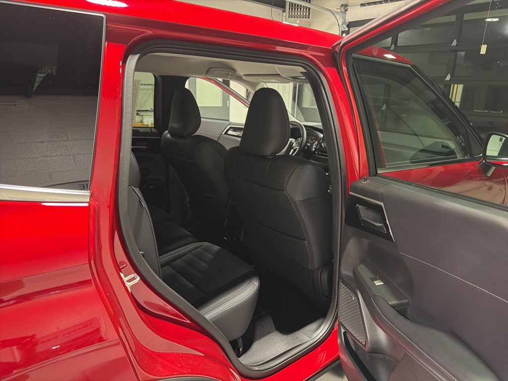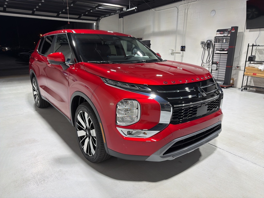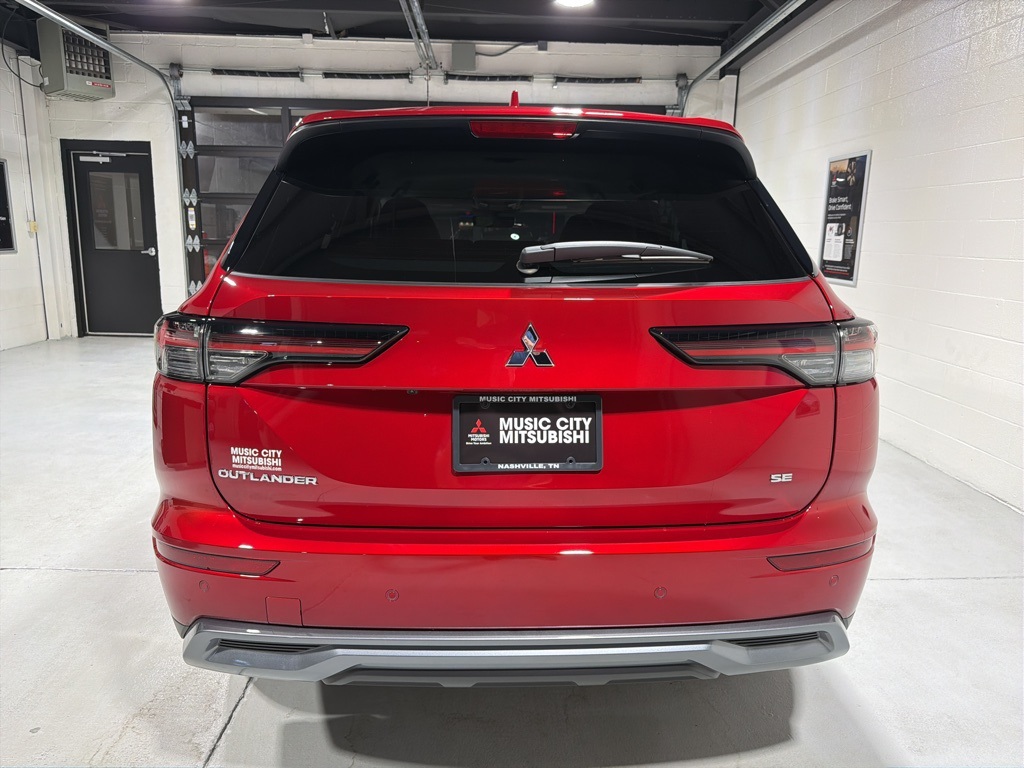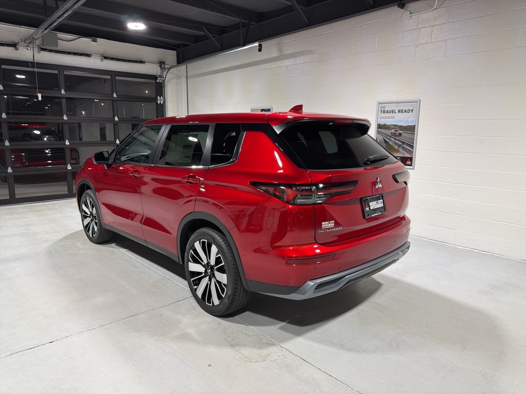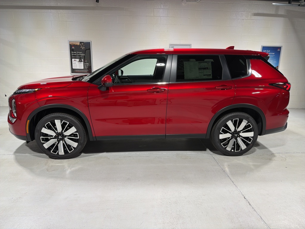 Red 2025 Mitsubishi Outlander SE FWD CVT 2.5L I4 DOHC 16V LEV3-SULEV30 181hp 3rd row seats: split-bench, 4-Wheel Disc Brakes, 8 Speakers, ABS brakes, Air Conditioning, Alloy wheels, AM/FM radio: SiriusXM, Android Auto & Apple CarPlay, Auto High-beam Headlights, Auto-dimming Rear-View mirror, Automatic temperature control, Brake assist, Bumpers: body-color, Driver door bin, Driver vanity mirror, Dual front impact airbags, Dual front side impact airbags, Electronic Stability Control, Emergency communication system: Mitsubishi Connect w/ 24-month trial, Exterior Parking Camera Rear, Four wheel independent suspension, Front anti-roll bar, Front Bucket Seats, Front Center Armrest w/Storage, Front dual zone A/C, Front fog lights, Front reading lights, Fully automatic headlights, Garage door transmitter: HomeLink, Heated door mirrors, Heated Front Bucket Seats, Heated front seats, Illuminated entry, Knee airbag, Leather Shift Knob, Leather steering wheel, Low tire pressure warning, Navigation System, Occupant sensing airbag, Outside temperature display, Overhead airbag, Overhead console, Panic alarm, Passenger door bin, Passenger vanity mirror, Power door mirrors, Power driver seat, Power Liftgate, Power steering, Power windows, Radio data system, Radio: AM/FM 12.3" Navigation w/Smartphone-Link, Rain sensing wipers, Rear anti-roll bar, Rear seat center armrest, Rear side impact airbag, Rear window defroster, Rear window wiper, Reclining 3rd row seat, Remote keyless entry, Security system, Speed control, Speed-Sensitive Wipers, Split folding rear seat, Spoiler, Steering wheel mounted audio controls, Synthetic Leather Seating Surfaces, Tachometer, Telescoping steering wheel, Tilt steering wheel, Traction control, Trip computer, Turn signal indicator mirrors, Variably intermittent wipers, Wheels: 20" Two-Tone Alloy.