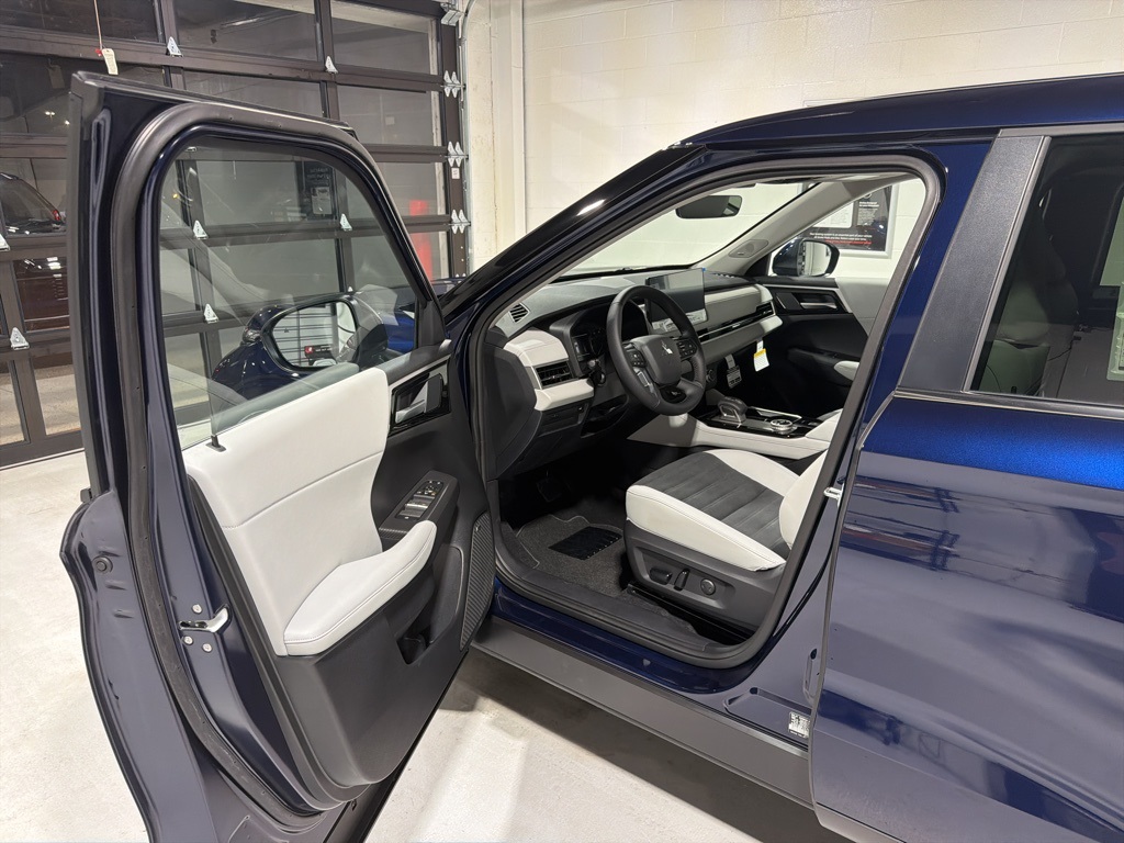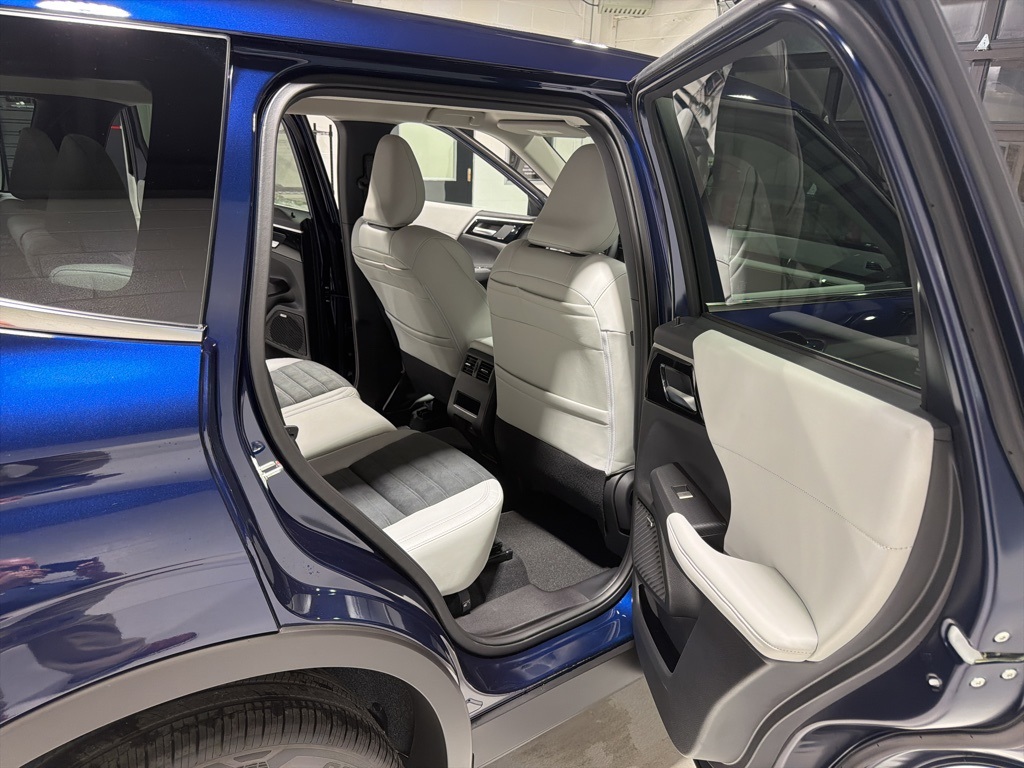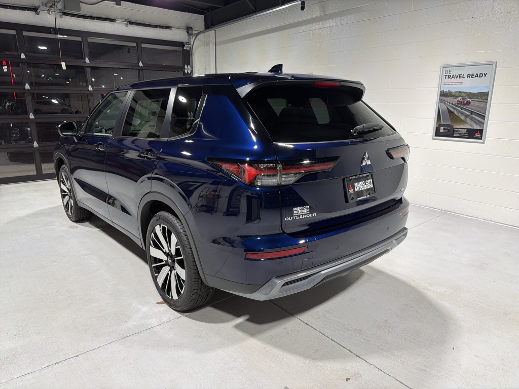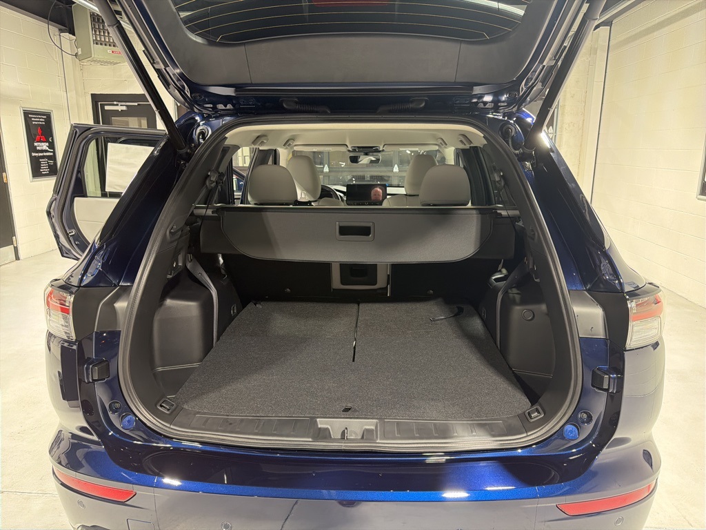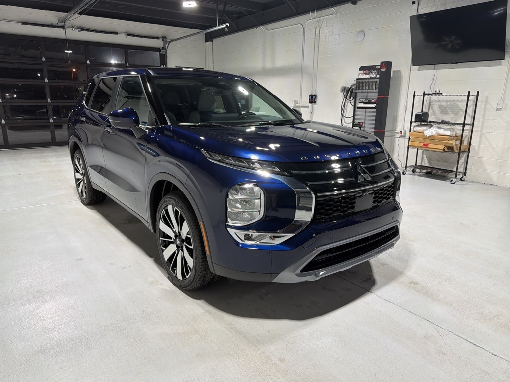 Blue 2025 Mitsubishi Outlander SE FWD CVT 2.5L I4 DOHC 16V LEV3-SULEV30 181hp 3rd row seats: split-bench, 4-Wheel Disc Brakes, 8 Speakers, ABS brakes, Air Conditioning, Alloy wheels, AM/FM radio: SiriusXM, Android Auto & Apple CarPlay, Auto High-beam Headlights, Auto-dimming Rear-View mirror, Automatic temperature control, Brake assist, Bumpers: body-color, Driver door bin, Driver vanity mirror, Dual front impact airbags, Dual front side impact airbags, Electronic Stability Control, Emergency communication system: Mitsubishi Connect w/ 24-month trial, Exterior Parking Camera Rear, Four wheel independent suspension, Front anti-roll bar, Front Bucket Seats, Front Center Armrest w/Storage, Front dual zone A/C, Front fog lights, Front reading lights, Fully automatic headlights, Garage door transmitter: HomeLink, Heated door mirrors, Heated Front Bucket Seats, Heated front seats, Illuminated entry, Knee airbag, Leather Shift Knob, Leather steering wheel, Low tire pressure warning, Navigation System, Occupant sensing airbag, Outside temperature display, Overhead airbag, Overhead console, Panic alarm, Passenger door bin, Passenger vanity mirror, Power door mirrors, Power driver seat, Power Liftgate, Power steering, Power windows, Radio data system, Radio: AM/FM 12.3" Navigation w/Smartphone-Link, Rain sensing wipers, Rear anti-roll bar, Rear seat center armrest, Rear side impact airbag, Rear window defroster, Rear window wiper, Reclining 3rd row seat, Remote keyless entry, Security system, Speed control, Speed-Sensitive Wipers, Split folding rear seat, Spoiler, Steering wheel mounted audio controls, Synthetic Leather Seating Surfaces, Tachometer, Telescoping steering wheel, Tilt steering wheel, Traction control, Trip computer, Turn signal indicator mirrors, Variably intermittent wipers, Wheels: 20" Two-Tone Alloy.