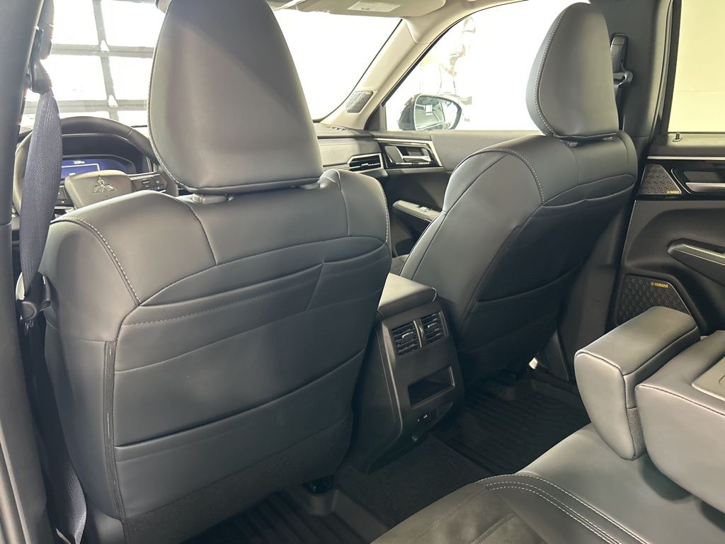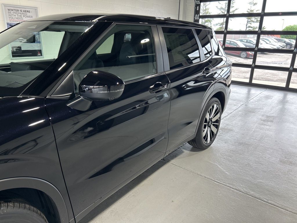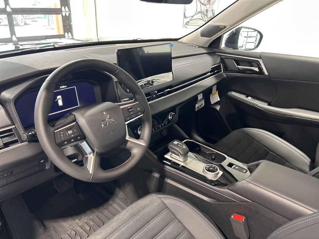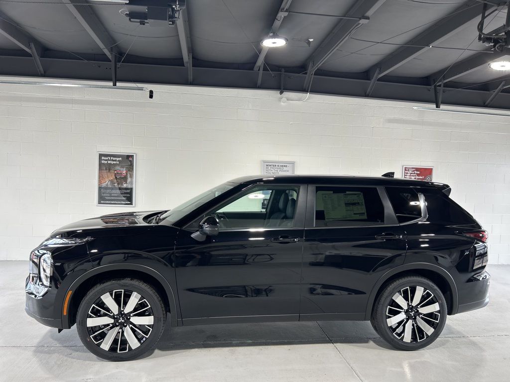 Labrador Black Pearl 2025 Mitsubishi Outlander SE FWD CVT 2.5L I4 DOHC 16V LEV3-SULEV30 181hp 3rd row seats: split-bench, 4-Wheel Disc Brakes, 8 Speakers, ABS brakes, Air Conditioning, Alloy wheels, AM/FM radio: SiriusXM, Android Auto & Apple CarPlay, Auto High-beam Headlights, Auto-dimming Rear-View mirror, Automatic temperature control, Brake assist, Bumpers: body-color, Driver door bin, Driver vanity mirror, Dual front impact airbags, Dual front side impact airbags, Electronic Stability Control, Emergency communication system: Mitsubishi Connect w/ 24-month trial, Exterior Parking Camera Rear, Four wheel independent suspension, Front anti-roll bar, Front Bucket Seats, Front Center Armrest w/Storage, Front dual zone A/C, Front fog lights, Front reading lights, Fully automatic headlights, Garage door transmitter: HomeLink, Heated door mirrors, Heated Front Bucket Seats, Heated front seats, Illuminated entry, Knee airbag, Leather Shift Knob, Leather steering wheel, Low tire pressure warning, Navigation System, Occupant sensing airbag, Outside temperature display, Overhead airbag, Overhead console, Panic alarm, Passenger door bin, Passenger vanity mirror, Power door mirrors, Power driver seat, Power Liftgate, Power steering, Power windows, Radio data system, Radio: AM/FM 12.3" Navigation w/Smartphone-Link, Rain sensing wipers, Rear anti-roll bar, Rear seat center armrest, Rear side impact airbag, Rear window defroster, Rear window wiper, Reclining 3rd row seat, Remote keyless entry, Security system, Speed control, Speed-Sensitive Wipers, Split folding rear seat, Spoiler, Steering wheel mounted audio controls, Synthetic Leather Seating Surfaces, Tachometer, Telescoping steering wheel, Tilt steering wheel, Traction control, Trip computer, Turn signal indicator mirrors, Variably intermittent wipers, Wheels: 20" Two-Tone Alloy.
