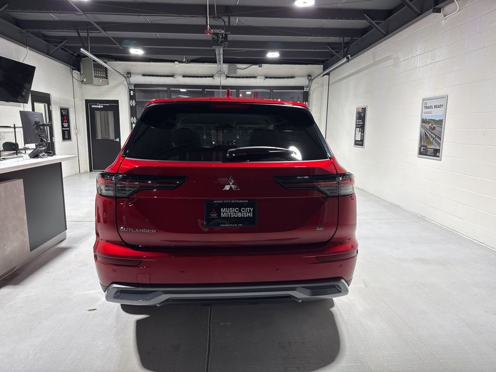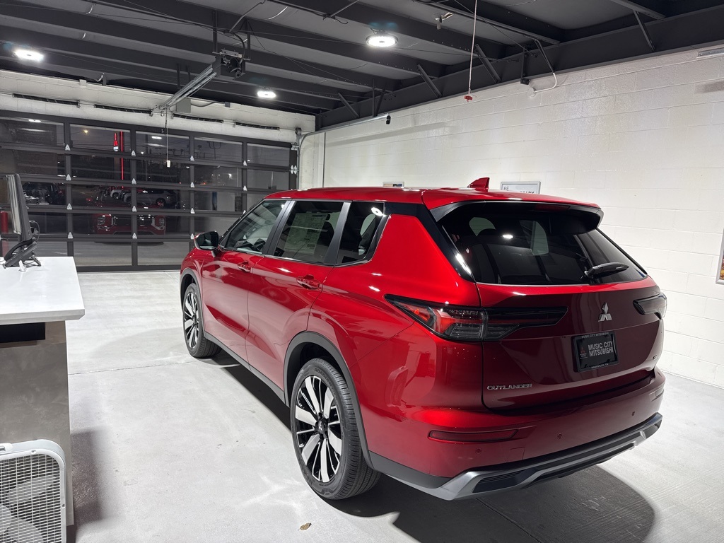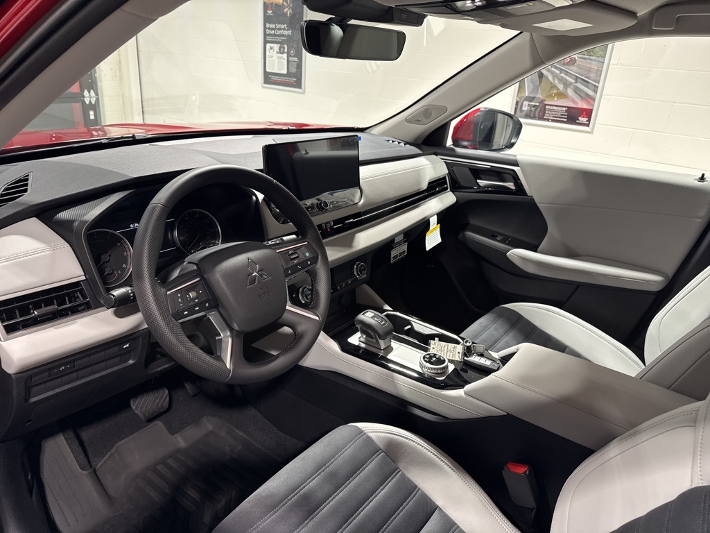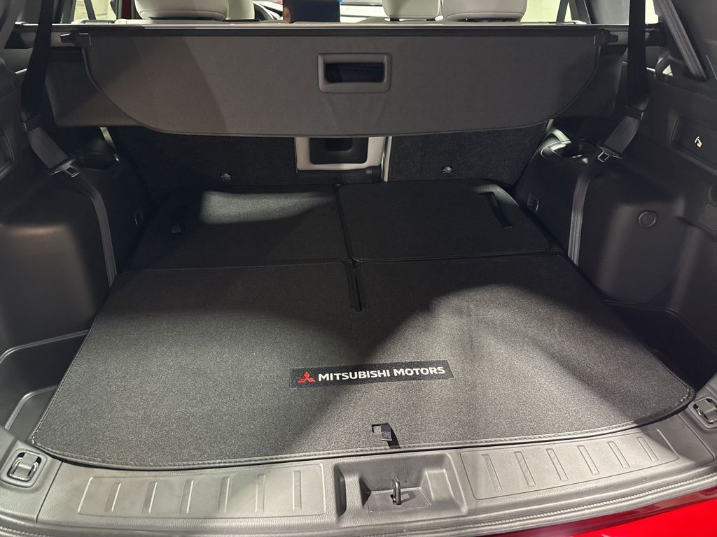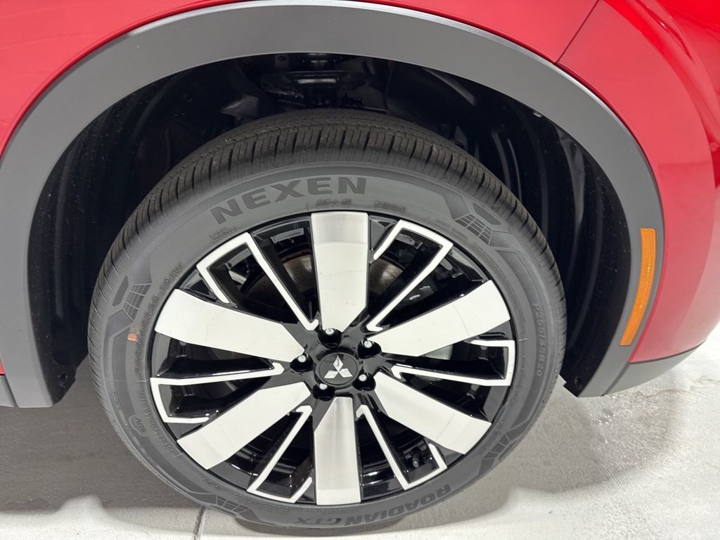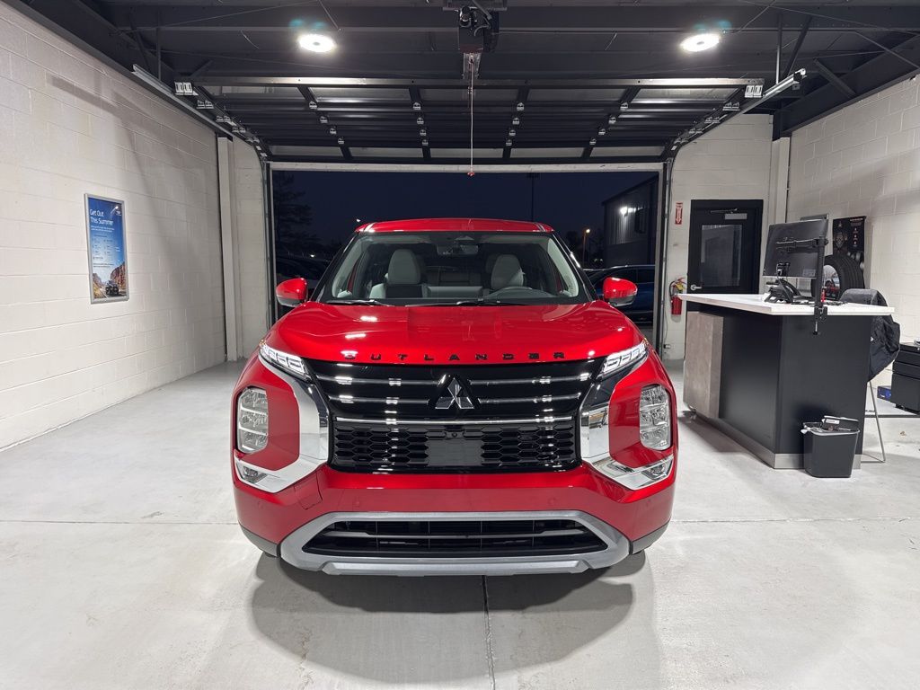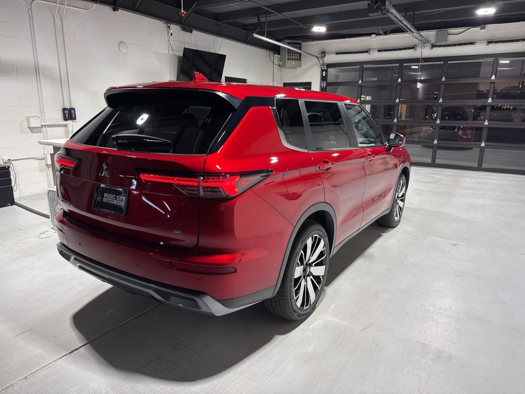 Red 2025 Mitsubishi Outlander SE FWD CVT 2.5L I4 DOHC 16V LEV3-SULEV30 181hp 3rd row seats: split-bench, 4-Wheel Disc Brakes, 8 Speakers, ABS brakes, Air Conditioning, Alloy wheels, AM/FM radio: SiriusXM, Android Auto & Apple CarPlay, Auto High-beam Headlights, Auto-dimming Rear-View mirror, Automatic temperature control, Brake assist, Bumpers: body-color, Driver door bin, Driver vanity mirror, Dual front impact airbags, Dual front side impact airbags, Electronic Stability Control, Emergency communication system: Mitsubishi Connect w/ 24-month trial, Exterior Parking Camera Rear, Four wheel independent suspension, Front anti-roll bar, Front Bucket Seats, Front Center Armrest w/Storage, Front dual zone A/C, Front fog lights, Front reading lights, Fully automatic headlights, Garage door transmitter: HomeLink, Heated door mirrors, Heated Front Bucket Seats, Heated front seats, Illuminated entry, Knee airbag, Leather Shift Knob, Leather steering wheel, Low tire pressure warning, Navigation System, Occupant sensing airbag, Outside temperature display, Overhead airbag, Overhead console, Panic alarm, Passenger door bin, Passenger vanity mirror, Power door mirrors, Power driver seat, Power Liftgate, Power steering, Power windows, Radio data system, Radio: AM/FM 12.3" Navigation w/Smartphone-Link, Rain sensing wipers, Rear anti-roll bar, Rear seat center armrest, Rear side impact airbag, Rear window defroster, Rear window wiper, Reclining 3rd row seat, Remote keyless entry, Security system, Speed control, Speed-Sensitive Wipers, Split folding rear seat, Spoiler, Steering wheel mounted audio controls, Synthetic Leather Seating Surfaces, Tachometer, Telescoping steering wheel, Tilt steering wheel, Traction control, Trip computer, Turn signal indicator mirrors, Variably intermittent wipers, Wheels: 20" Two-Tone Alloy.