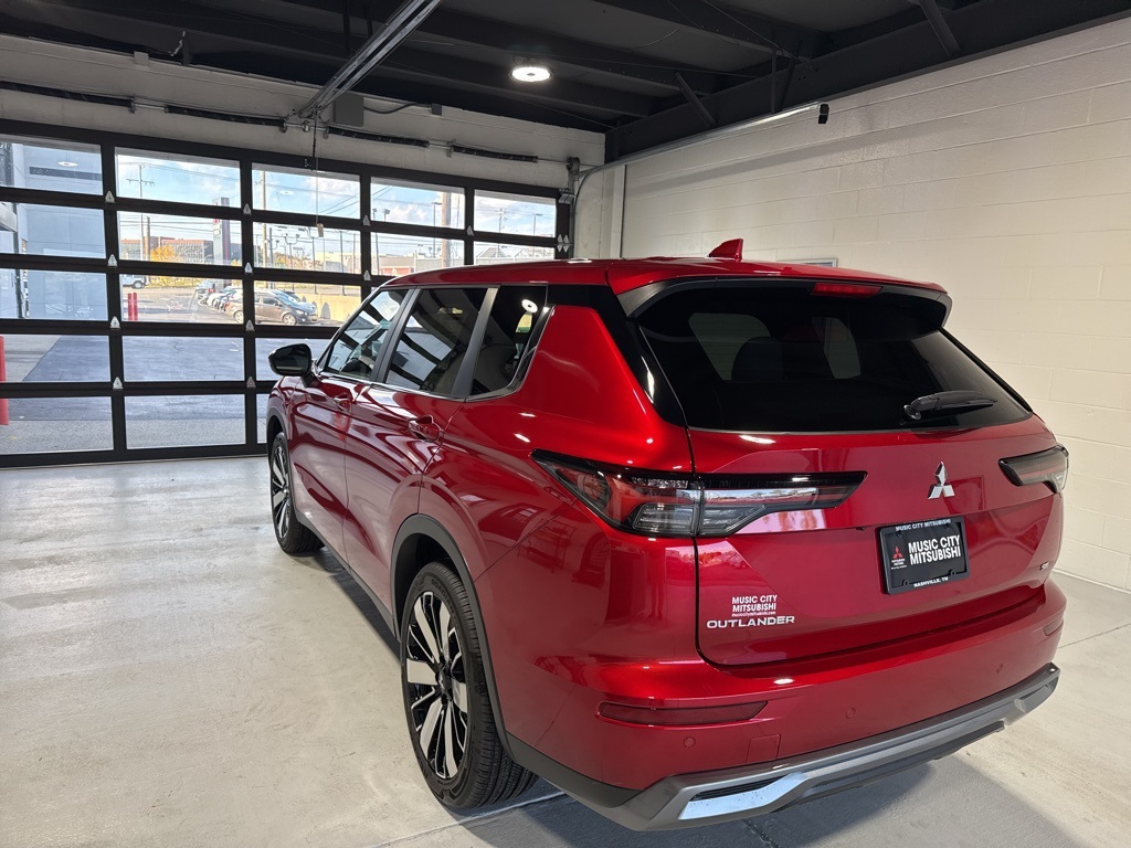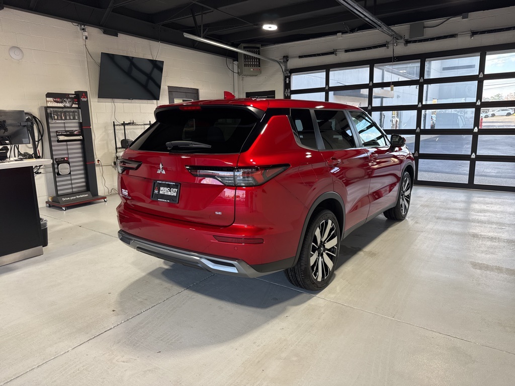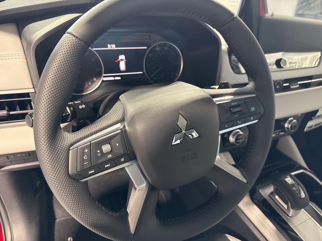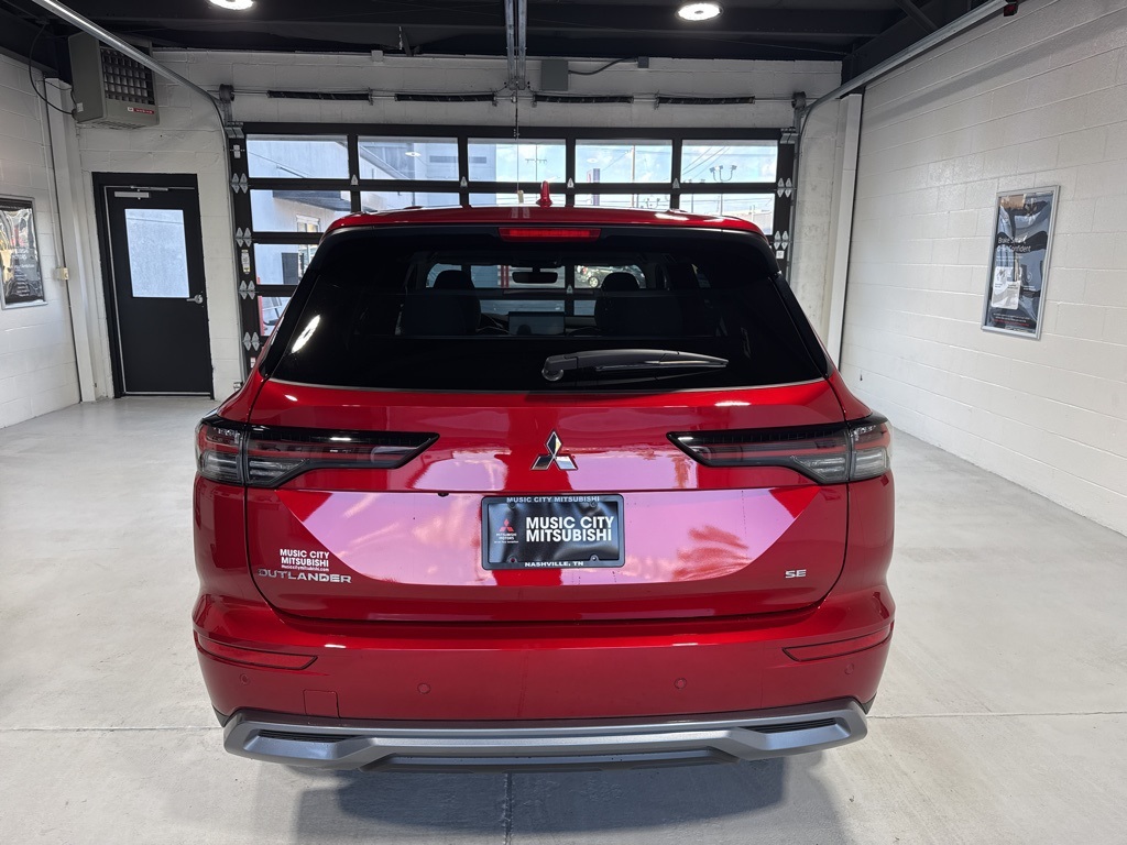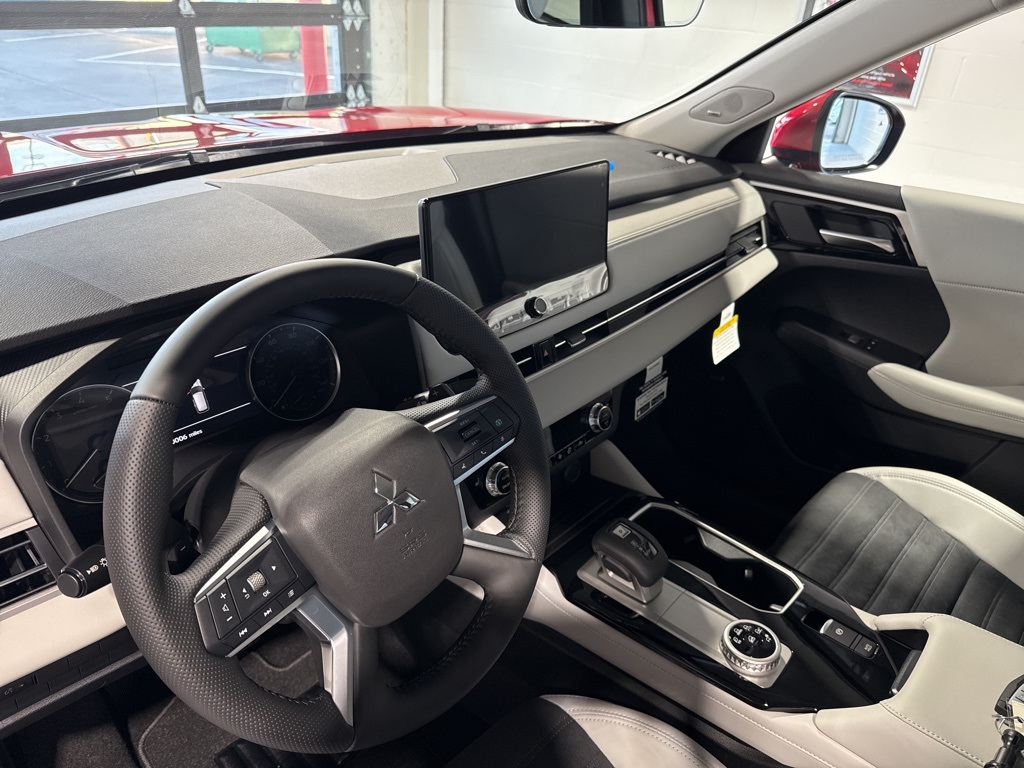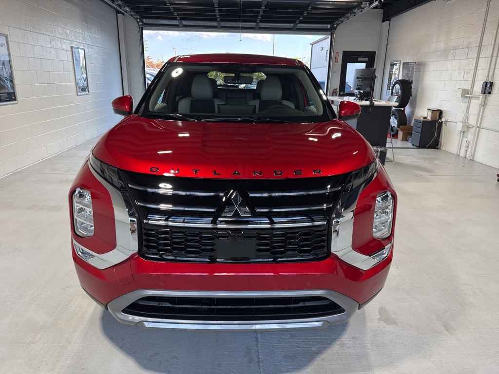 Red 2025 Mitsubishi Outlander SE FWD CVT 2.5L I4 DOHC 16V LEV3-SULEV30 181hp 3rd row seats: split-bench, 4-Wheel Disc Brakes, 8 Speakers, ABS brakes, Air Conditioning, Alloy wheels, AM/FM radio: SiriusXM, Android Auto & Apple CarPlay, Auto High-beam Headlights, Auto-dimming Rear-View mirror, Automatic temperature control, Brake assist, Bumpers: body-color, Driver door bin, Driver vanity mirror, Dual front impact airbags, Dual front side impact airbags, Electronic Stability Control, Emergency communication system: Mitsubishi Connect w/ 24-month trial, Exterior Parking Camera Rear, Four wheel independent suspension, Front anti-roll bar, Front Bucket Seats, Front Center Armrest w/Storage, Front dual zone A/C, Front fog lights, Front reading lights, Fully automatic headlights, Garage door transmitter: HomeLink, Heated door mirrors, Heated Front Bucket Seats, Heated front seats, Illuminated entry, Knee airbag, Leather Shift Knob, Leather steering wheel, Low tire pressure warning, Navigation System, Occupant sensing airbag, Outside temperature display, Overhead airbag, Overhead console, Panic alarm, Passenger door bin, Passenger vanity mirror, Power door mirrors, Power driver seat, Power Liftgate, Power steering, Power windows, Radio data system, Radio: AM/FM 12.3" Navigation w/Smartphone-Link, Rain sensing wipers, Rear anti-roll bar, Rear seat center armrest, Rear side impact airbag, Rear window defroster, Rear window wiper, Reclining 3rd row seat, Remote keyless entry, Security system, Speed control, Speed-Sensitive Wipers, Split folding rear seat, Spoiler, Steering wheel mounted audio controls, Synthetic Leather Seating Surfaces, Tachometer, Telescoping steering wheel, Tilt steering wheel, Traction control, Trip computer, Turn signal indicator mirrors, Variably intermittent wipers, Wheels: 20" Two-Tone Alloy.