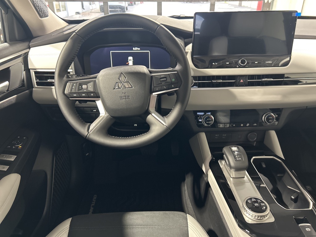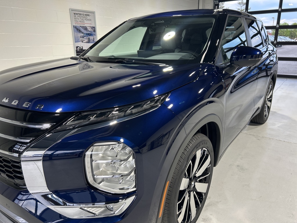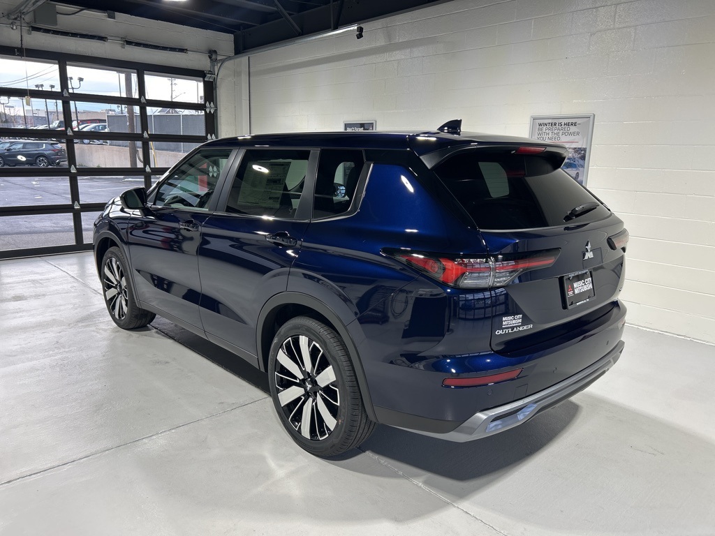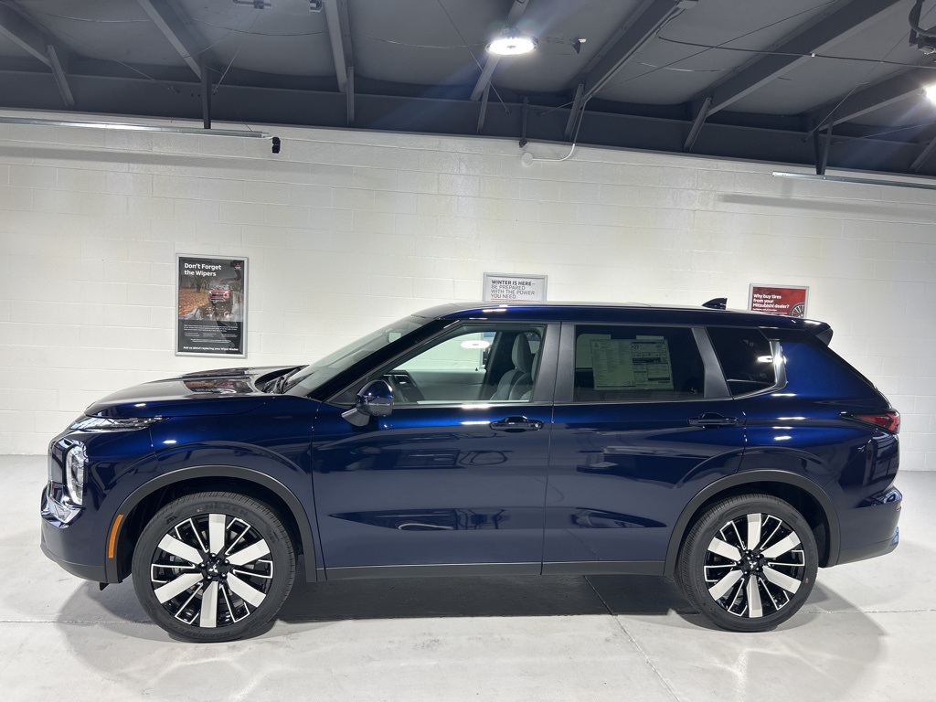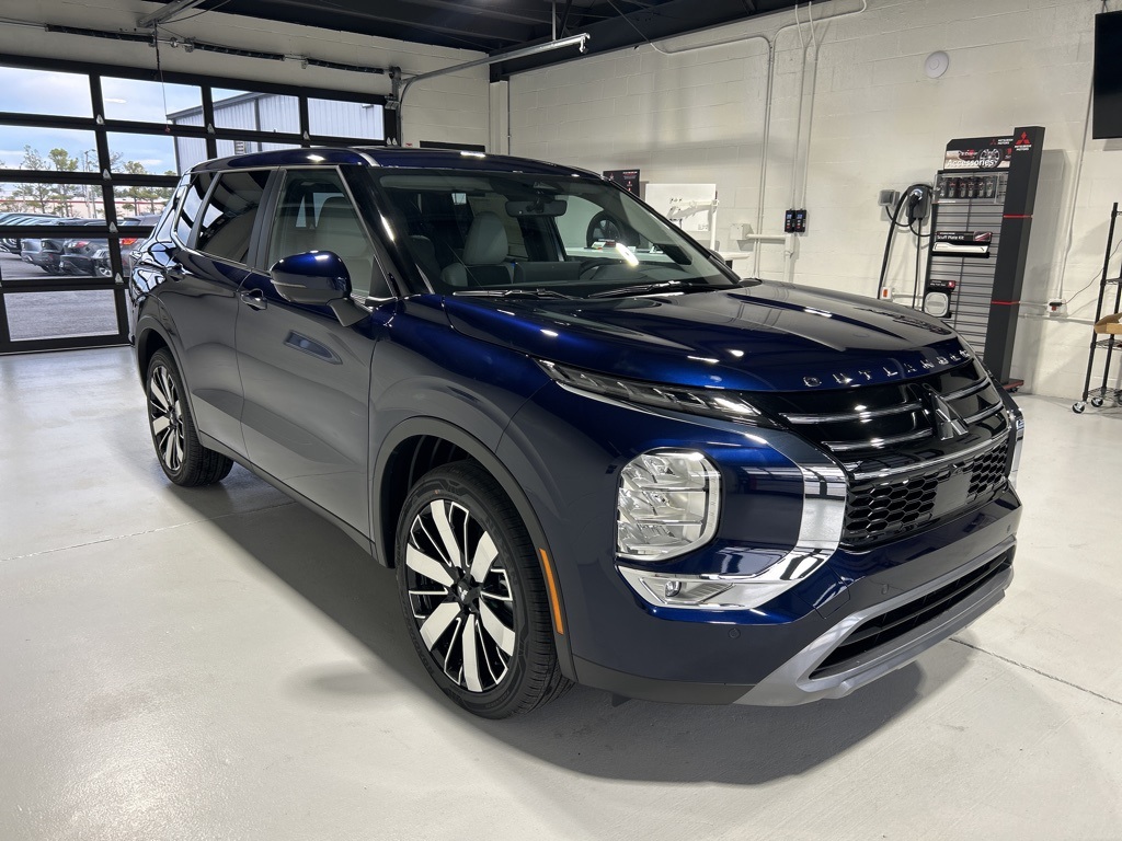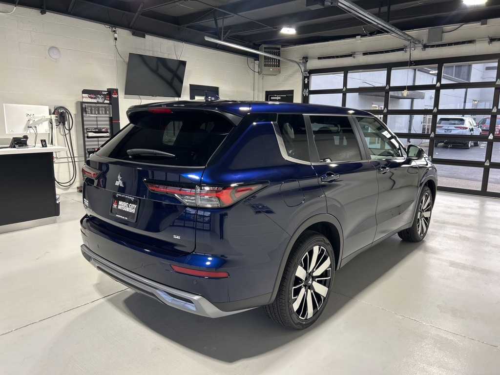 Cosmic Blue Metallic 2025 Mitsubishi Outlander SE FWD CVT 2.5L I4 DOHC 16V LEV3-SULEV30 181hp 3rd row seats: split-bench, 4-Wheel Disc Brakes, 8 Speakers, ABS brakes, Air Conditioning, Alloy wheels, AM/FM radio: SiriusXM, Android Auto & Apple CarPlay, Auto High-beam Headlights, Auto-dimming Rear-View mirror, Automatic temperature control, Brake assist, Bumpers: body-color, Driver door bin, Driver vanity mirror, Dual front impact airbags, Dual front side impact airbags, Electronic Stability Control, Emergency communication system: Mitsubishi Connect w/ 24-month trial, Exterior Parking Camera Rear, Four wheel independent suspension, Front anti-roll bar, Front Bucket Seats, Front Center Armrest w/Storage, Front dual zone A/C, Front fog lights, Front reading lights, Fully automatic headlights, Garage door transmitter: HomeLink, Heated door mirrors, Heated Front Bucket Seats, Heated front seats, Illuminated entry, Knee airbag, Leather Shift Knob, Leather steering wheel, Low tire pressure warning, Navigation System, Occupant sensing airbag, Outside temperature display, Overhead airbag, Overhead console, Panic alarm, Passenger door bin, Passenger vanity mirror, Power door mirrors, Power driver seat, Power Liftgate, Power steering, Power windows, Radio data system, Radio: AM/FM 12.3" Navigation w/Smartphone-Link, Rain sensing wipers, Rear anti-roll bar, Rear seat center armrest, Rear side impact airbag, Rear window defroster, Rear window wiper, Reclining 3rd row seat, Remote keyless entry, Security system, Speed control, Speed-Sensitive Wipers, Split folding rear seat, Spoiler, Steering wheel mounted audio controls, Synthetic Leather Seating Surfaces, Tachometer, Telescoping steering wheel, Tilt steering wheel, Traction control, Trip computer, Turn signal indicator mirrors, Variably intermittent wipers, Wheels: 20" Two-Tone Alloy.