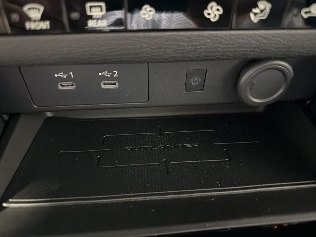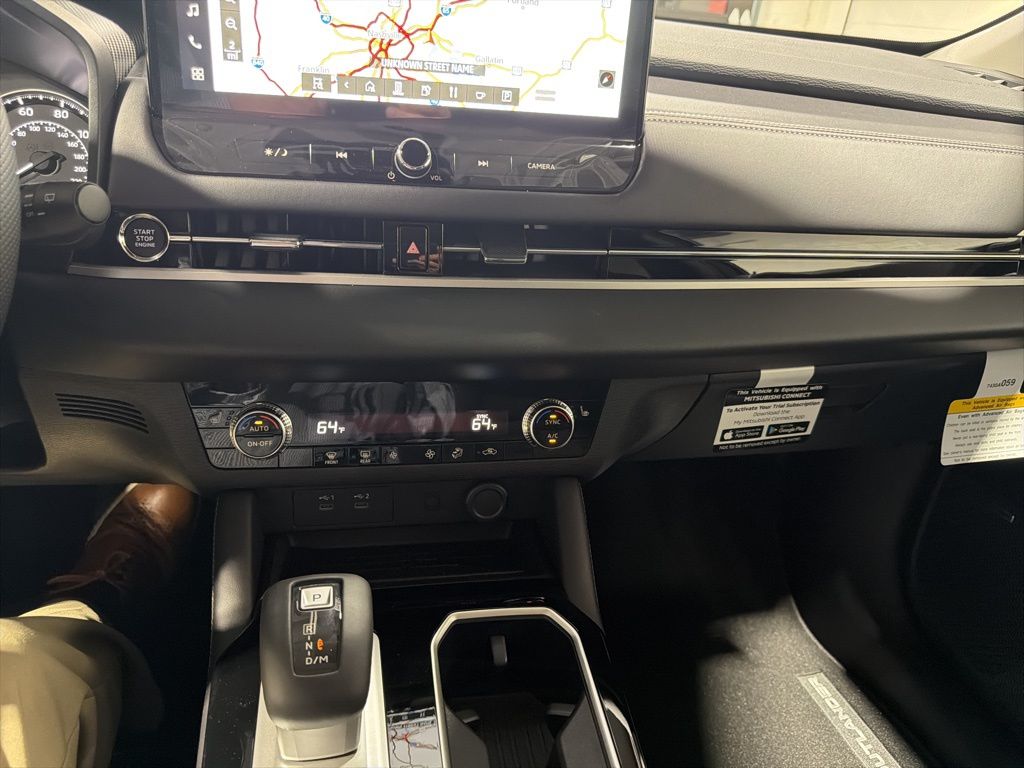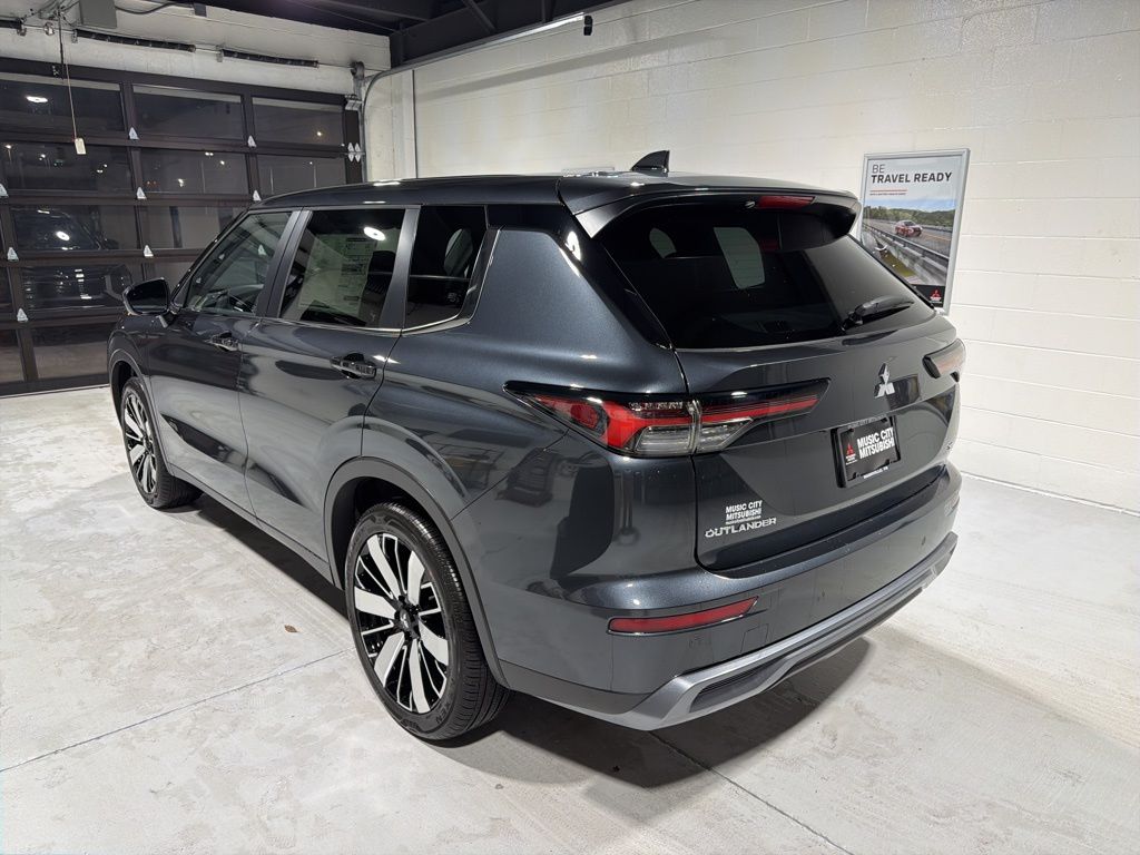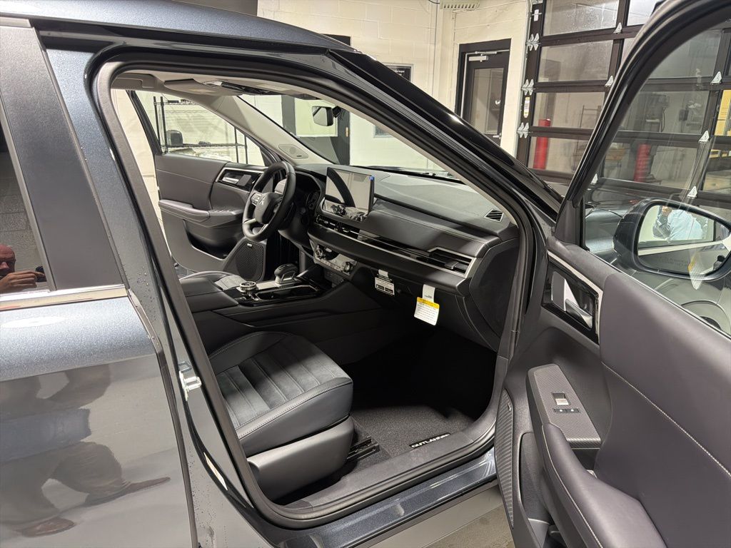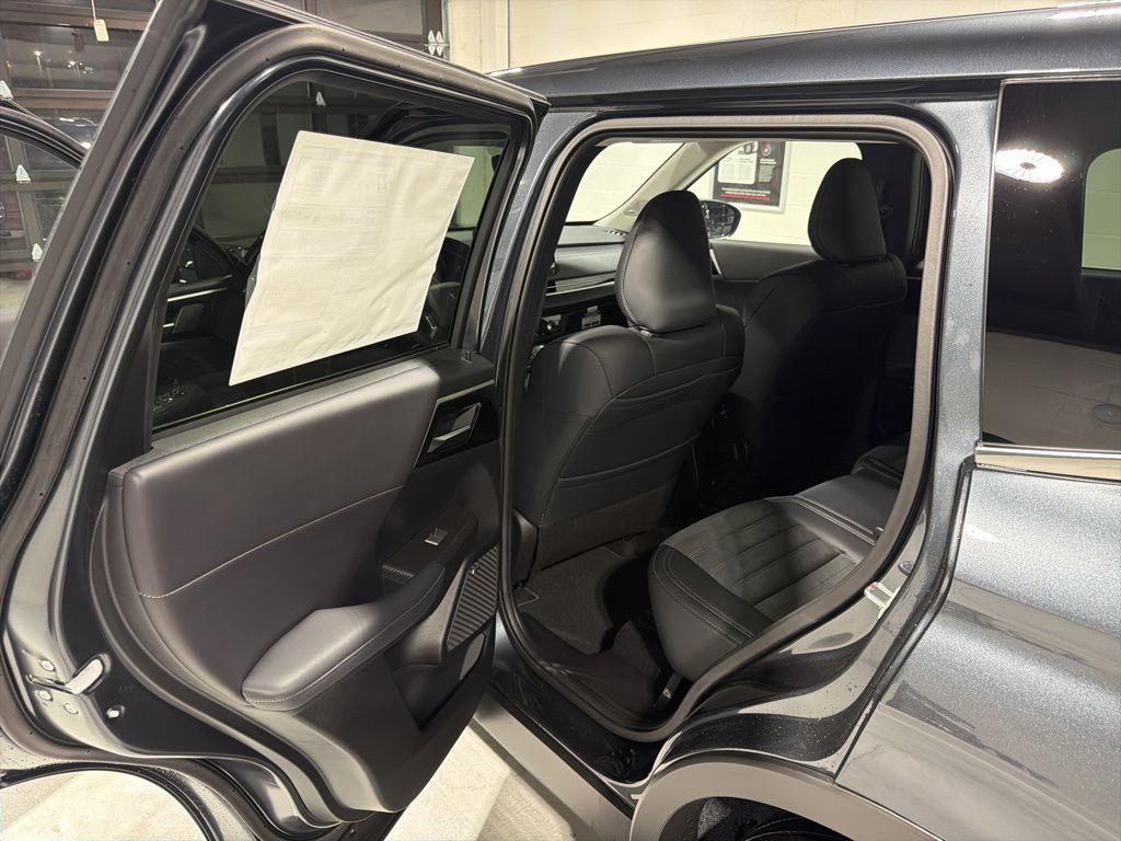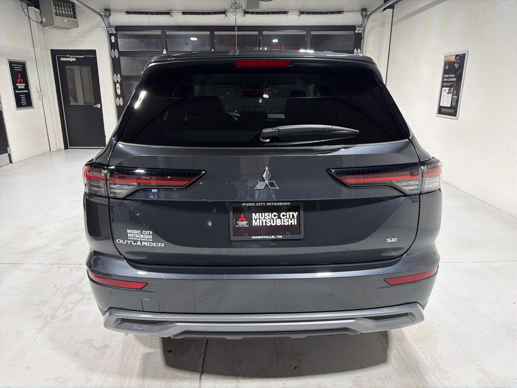 Gray 2025 Mitsubishi Outlander SE FWD CVT 2.5L I4 DOHC 16V LEV3-SULEV30 181hp 3rd row seats: split-bench, 4-Wheel Disc Brakes, 8 Speakers, ABS brakes, Air Conditioning, Alloy wheels, AM/FM radio: SiriusXM, Android Auto & Apple CarPlay, Auto High-beam Headlights, Auto-dimming Rear-View mirror, Automatic temperature control, Brake assist, Bumpers: body-color, Driver door bin, Driver vanity mirror, Dual front impact airbags, Dual front side impact airbags, Electronic Stability Control, Emergency communication system: Mitsubishi Connect w/ 24-month trial, Exterior Parking Camera Rear, Four wheel independent suspension, Front anti-roll bar, Front Bucket Seats, Front Center Armrest w/Storage, Front dual zone A/C, Front fog lights, Front reading lights, Fully automatic headlights, Garage door transmitter: HomeLink, Heated door mirrors, Heated Front Bucket Seats, Heated front seats, Illuminated entry, Knee airbag, Leather Shift Knob, Leather steering wheel, Low tire pressure warning, Navigation System, Occupant sensing airbag, Outside temperature display, Overhead airbag, Overhead console, Panic alarm, Passenger door bin, Passenger vanity mirror, Power door mirrors, Power driver seat, Power Liftgate, Power steering, Power windows, Radio data system, Radio: AM/FM 12.3" Navigation w/Smartphone-Link, Rain sensing wipers, Rear anti-roll bar, Rear seat center armrest, Rear side impact airbag, Rear window defroster, Rear window wiper, Reclining 3rd row seat, Remote keyless entry, Security system, Speed control, Speed-Sensitive Wipers, Split folding rear seat, Spoiler, Steering wheel mounted audio controls, Synthetic Leather Seating Surfaces, Tachometer, Telescoping steering wheel, Tilt steering wheel, Traction control, Trip computer, Turn signal indicator mirrors, Variably intermittent wipers, Wheels: 20" Two-Tone Alloy.