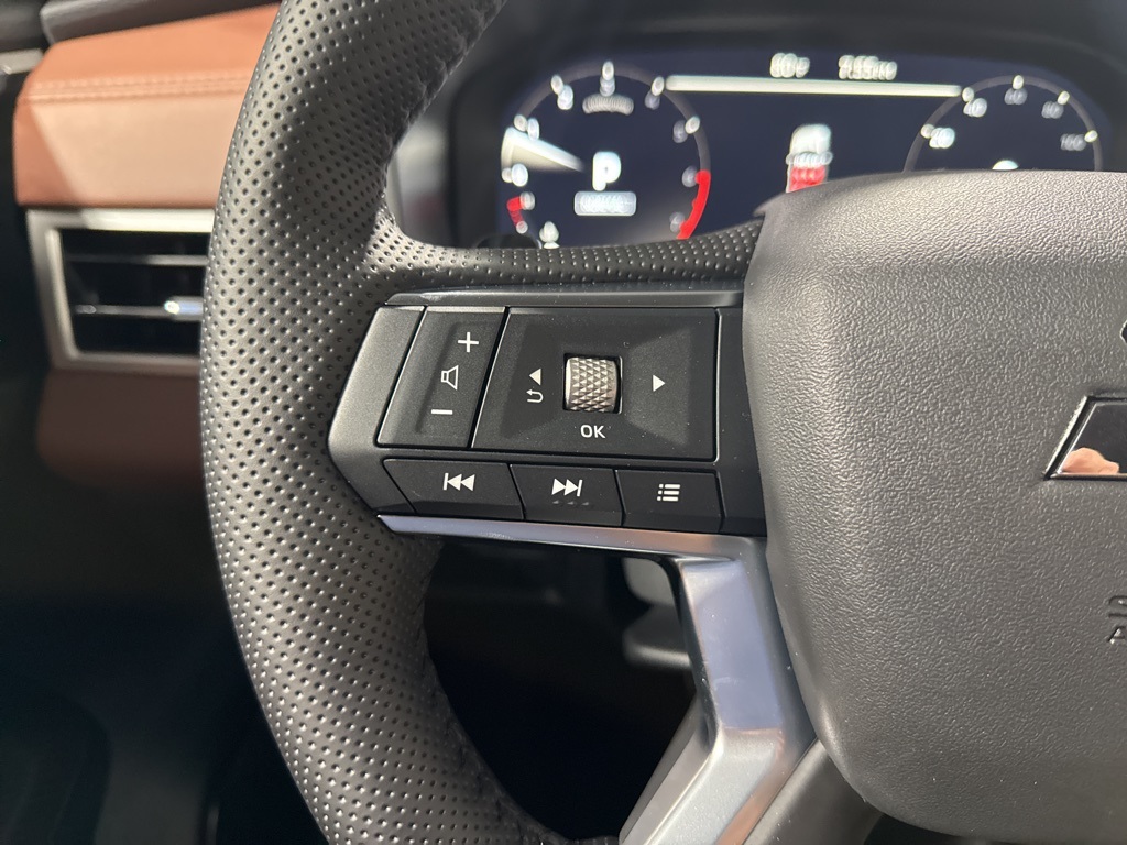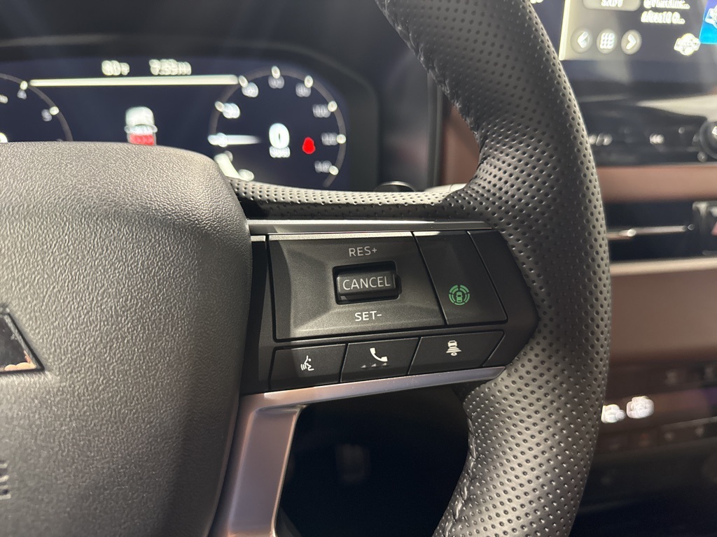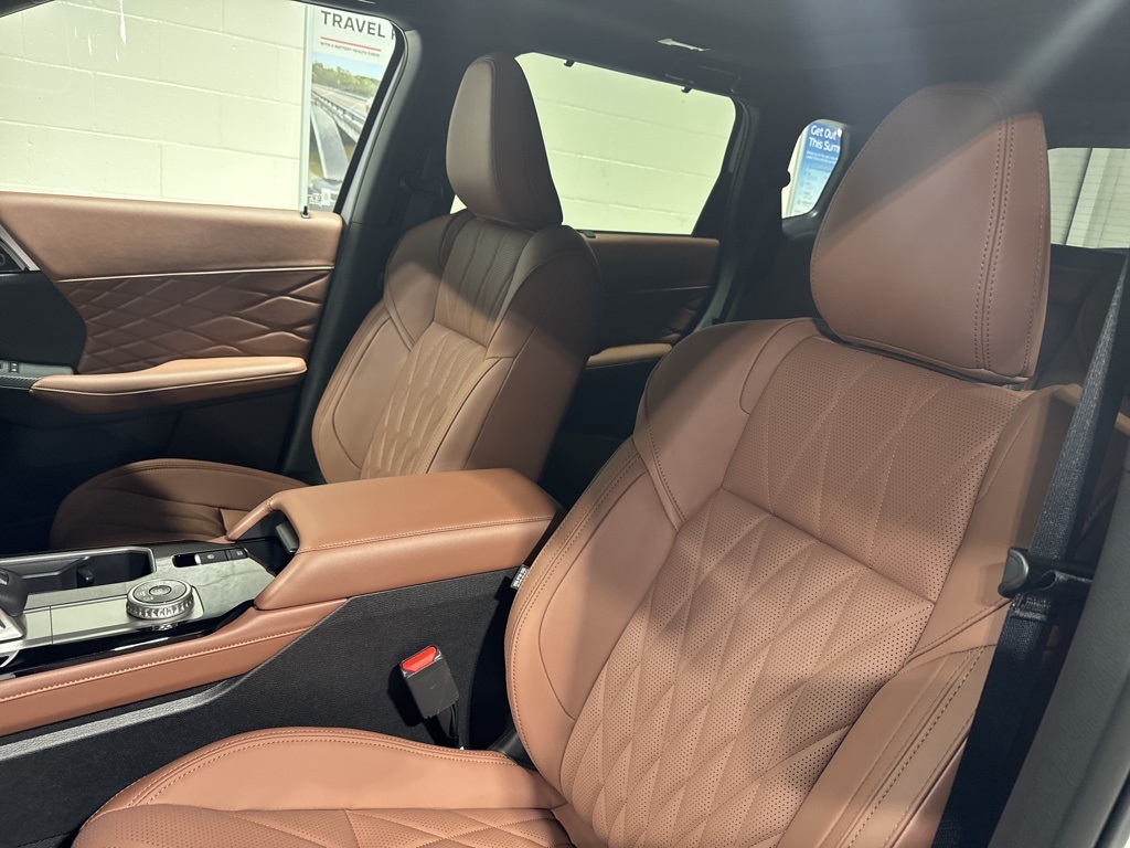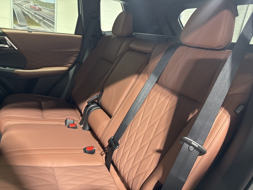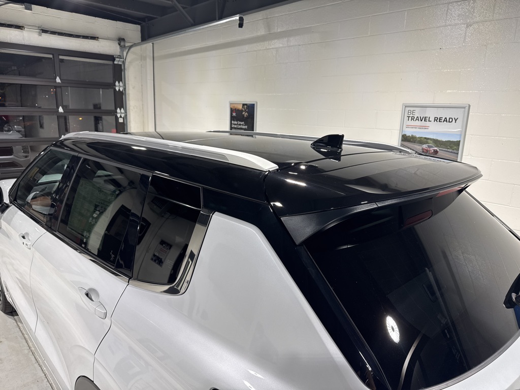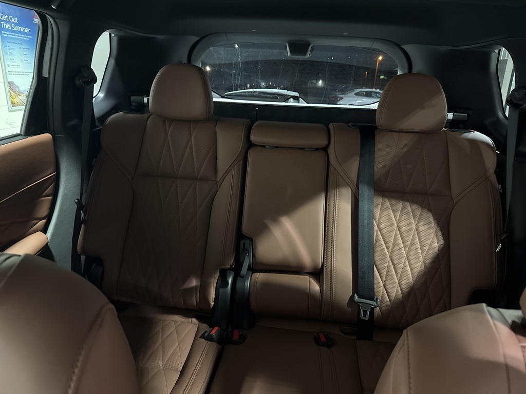 White 2025 Mitsubishi Outlander SEL FWD CVT 2.5L I4 DOHC 16V LEV3-SULEV30 181hp 3rd row seats: split-bench, 4-Wheel Disc Brakes, 8 Speakers, ABS brakes, Air Conditioning, Alloy wheels, AM/FM radio: SiriusXM, Android Auto & Apple CarPlay, Auto High-beam Headlights, Auto-dimming Rear-View mirror, Automatic temperature control, Brake assist, Bumpers: body-color, Driver door bin, Driver vanity mirror, Dual front impact airbags, Dual front side impact airbags, Electronic Stability Control, Emergency communication system: Mitsubishi Connect w/ 24-month trial, Exterior Parking Camera Rear, Four wheel independent suspension, Front anti-roll bar, Front Bucket Seats, Front Center Armrest w/Storage, Front dual zone A/C, Front fog lights, Front reading lights, Fully automatic headlights, Garage door transmitter: HomeLink, Heated door mirrors, Heated Front Bucket Seats, Heated front seats, Heated rear seats, Heated steering wheel, Illuminated entry, Knee airbag, Leather Appointed Seating Surfaces, Leather Shift Knob, Leather steering wheel, Low tire pressure warning, Memory seat, Navigation System, Occupant sensing airbag, Outside temperature display, Overhead airbag, Overhead console, Panic alarm, Passenger door bin, Passenger vanity mirror, Power door mirrors, Power driver seat, Power Liftgate, Power moonroof: Panoramic, Power passenger seat, Power steering, Power windows, Radio data system, Radio: AM/FM 12.3" Navigation w/Smartphone-Link, Rain sensing wipers, Rear air conditioning, Rear anti-roll bar, Rear seat center armrest, Rear side impact airbag, Rear window defroster, Rear window wiper, Reclining 3rd row seat, Remote keyless entry, Security system, Speed control, Speed-Sensitive Wipers, Split folding rear seat, Spoiler, Steering wheel mounted audio controls, Tachometer, Telescoping steering wheel, Tilt steering wheel, Traction control, Trip computer, Turn signal indicator mirrors, Variably intermittent wipers, Wheels: 20" Two-Tone Alloy.
