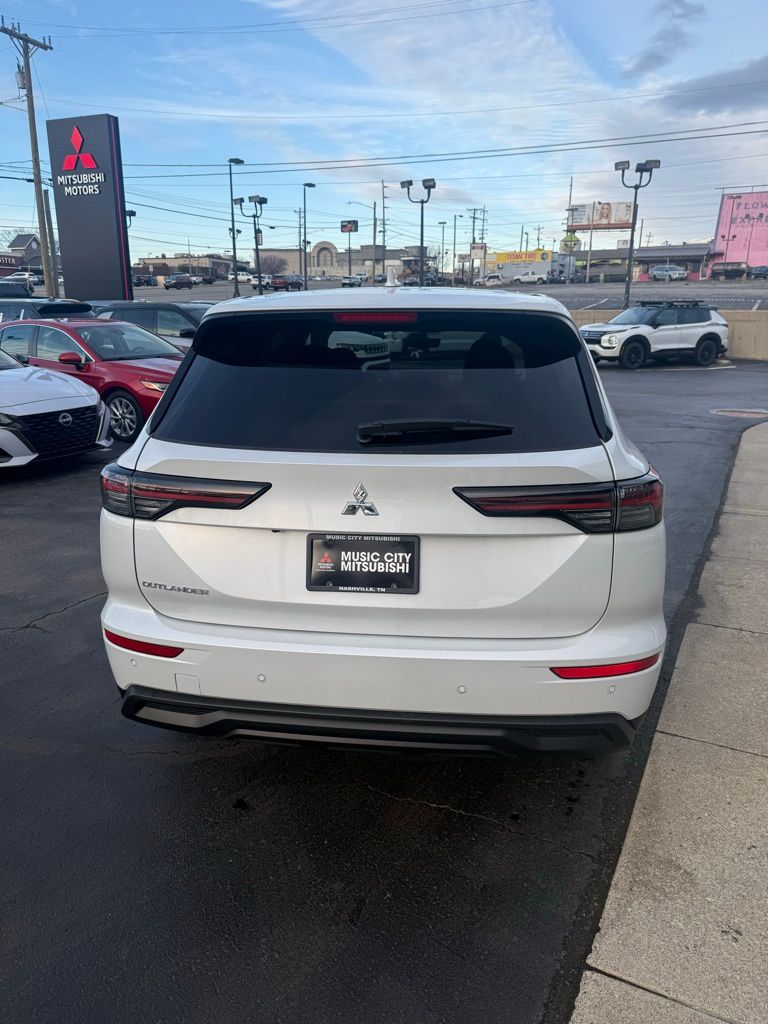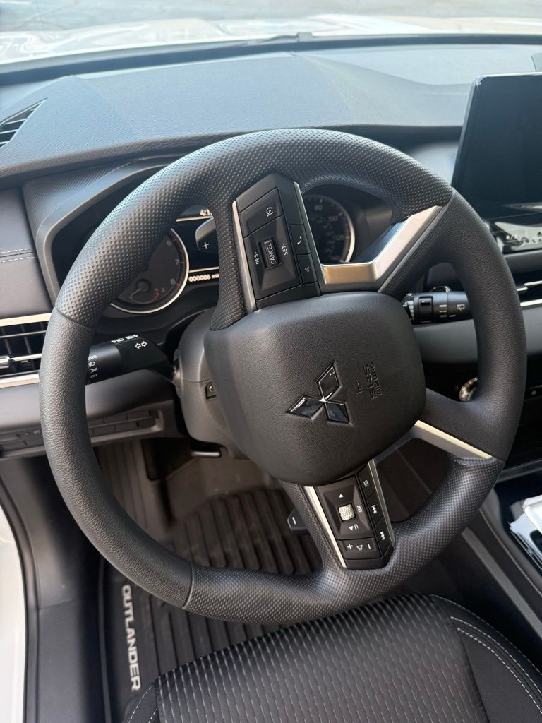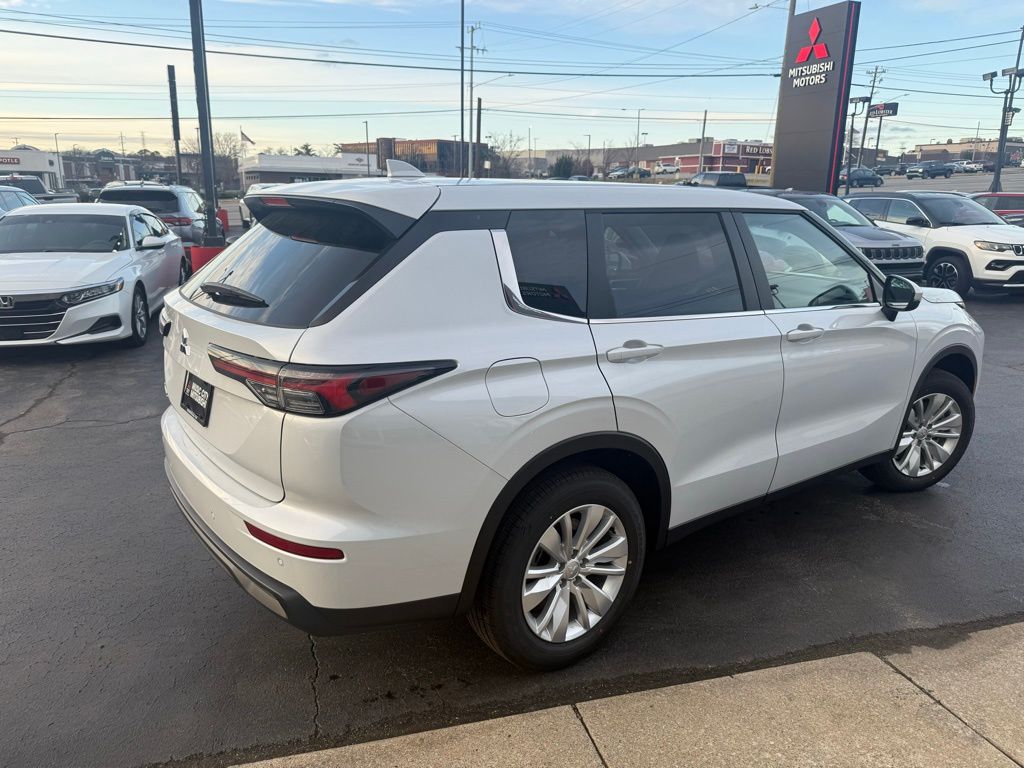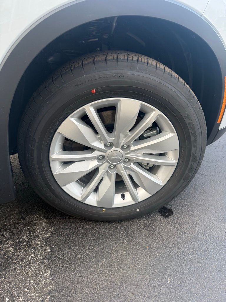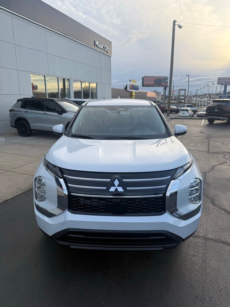 White 2026 Mitsubishi Outlander ES FWD CVT 1.5L I4 Turbocharged DOHC 16V LEV3-SULEV30 174hp 18" Alloy Wheels, 3rd row seats: split-bench, 4-Wheel Disc Brakes, 8 Speakers, ABS brakes, Air Conditioning, Alloy wheels, AM/FM radio: SiriusXM, Android Auto & Apple CarPlay, Auto High-beam Headlights, Auto-dimming Rear-View mirror, Automatic temperature control, Blind Spot Warning, Brake assist, Bumpers: body-color, Cloth Fabric Seating Surfaces, Driver door bin, Driver vanity mirror, Dual front impact airbags, Dual front side impact airbags, Electronic Stability Control, Emergency communication system: Mitsubishi Connect w/ 24-month trial, Exterior Parking Camera Rear, Four wheel independent suspension, Front anti-roll bar, Front Bucket Seats, Front Center Armrest w/Storage, Front dual zone A/C, Front reading lights, Fully automatic headlights, Illuminated entry, Knee airbag, Low tire pressure warning, Navigation System, Occupant sensing airbag, Outside temperature display, Overhead airbag, Overhead console, Panic alarm, Passenger door bin, Passenger vanity mirror, Power door mirrors, Power steering, Power windows, Radio data system, Radio: AM/FM 12.3" Navigation w/Smartphone-Link, Rear anti-roll bar, Rear Parking Sensors, Rear seat center armrest, Rear side impact airbag, Rear window defroster, Rear window wiper, Reclining 3rd row seat, Remote keyless entry, Security system, Speed control, Speed-Sensitive Wipers, Split folding rear seat, Spoiler, Steering wheel mounted audio controls, Tachometer, Telescoping steering wheel, Tilt steering wheel, Traction control, Trip computer, Turn signal indicator mirrors, Variably intermittent wipers.