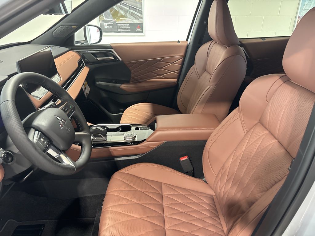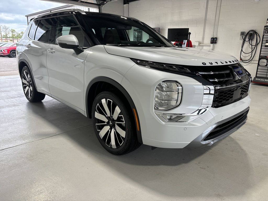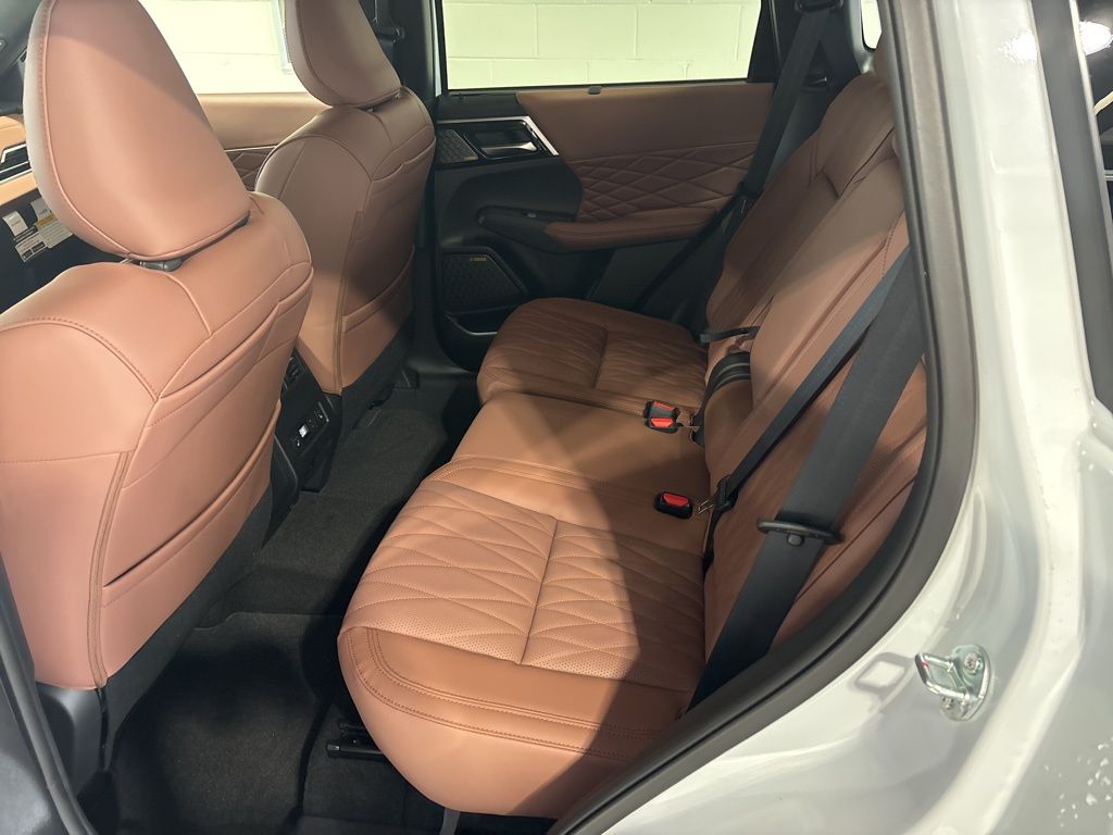 White 2026 Mitsubishi Outlander SEL FWD CVT 1.5L I4 Turbocharged DOHC 16V LEV3-SULEV30 174hp 3rd row seats: split-bench, 4-Wheel Disc Brakes, ABS brakes, Air Conditioning, Alloy wheels, AM/FM radio: SiriusXM, Android Auto & Apple CarPlay, Auto High-beam Headlights, Automatic temperature control, Brake assist, Bumpers: body-color, Compass, Delay-off headlights, Driver door bin, Driver vanity mirror, Dual front impact airbags, Dual front side impact airbags, Electronic Stability Control, Emergency communication system: Mitsubishi Connect w/ 24-month trial, Exterior Parking Camera Rear, Four wheel independent suspension, Front anti-roll bar, Front Bucket Seats, Front Center Armrest w/Storage, Front dual zone A/C, Front fog lights, Front reading lights, Fully automatic headlights, Heated door mirrors, Heated front seats, Heated rear seats, Heated steering wheel, Illuminated entry, Knee airbag, Leather Shift Knob, Leather steering wheel, Low tire pressure warning, Memory seat, Navigation System, Occupant sensing airbag, Outside temperature display, Overhead airbag, Overhead console, Panic alarm, Passenger door bin, Passenger vanity mirror, Power door mirrors, Power driver seat, Power Liftgate, Power moonroof: Panoramic, Power passenger seat, Power steering, Power windows, Radio data system, Radio: AM/FM 12.3" Navigation with Smartphone-Link, Rain sensing wipers, Rear air conditioning, Rear anti-roll bar, Rear seat center armrest, Rear side impact airbag, Rear window defroster, Rear window wiper, Reclining 3rd row seat, Remote keyless entry, Security system, Semi-Aniline Leather Appointed Seating Surfaces, Speed control, Speed-Sensitive Wipers, Split folding rear seat, Spoiler, Steering wheel mounted audio controls, Tachometer, Telescoping steering wheel, Tilt steering wheel, Traction control, Trip computer, Turn signal indicator mirrors, Variably intermittent wipers.
