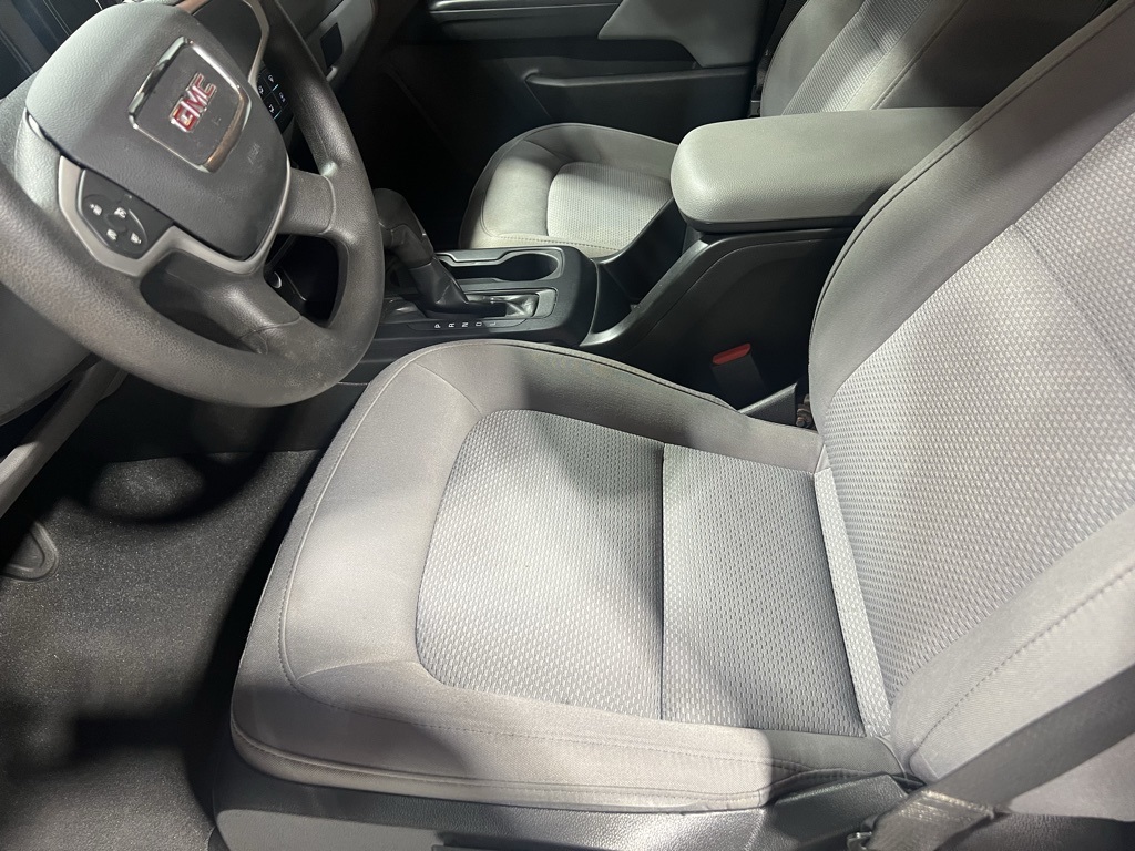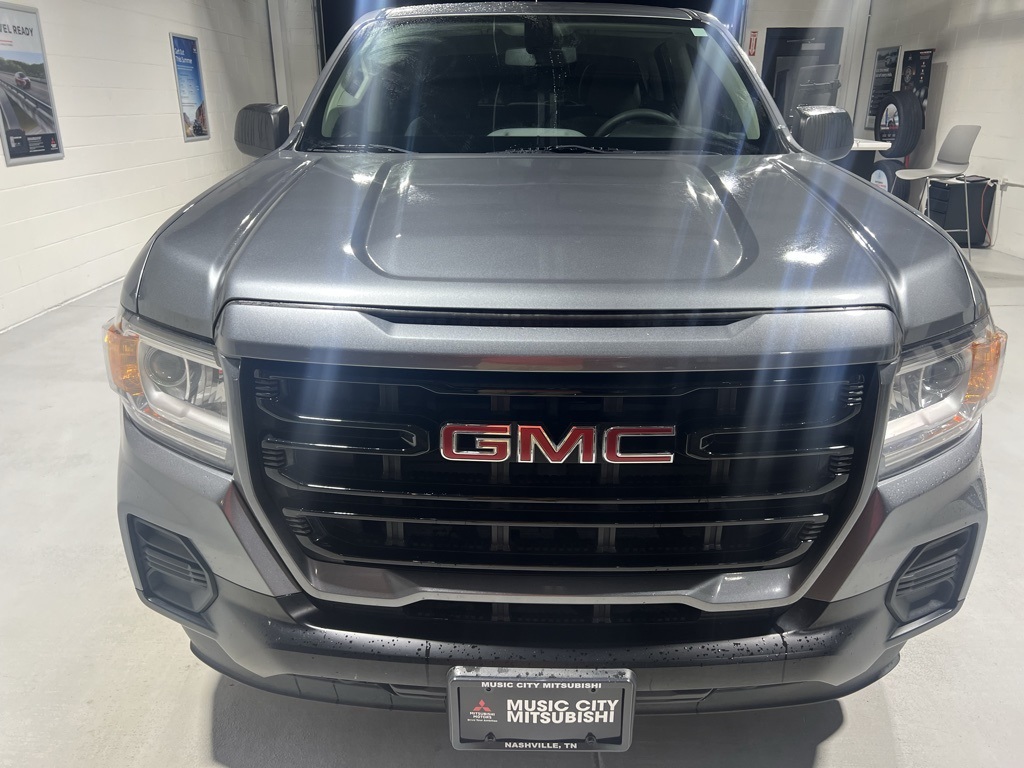 Satin Steel Metallic 2021 Clean CARFAX. GMC Canyon Elevation Standard RWD 6-Speed Automatic 2.5L I4 DI DOHC VVT 4-Wheel Disc Brakes, 4.10 Rear Axle Ratio, 4G LTE Wi-Fi Hotspot Capable, 6 Speakers, 6-Speaker Audio System Feature, ABS brakes, Air Conditioning, Alloy wheels, AM/FM radio: SiriusXM, Apple CarPlay/Android Auto, Automatic Locking Rear Differential, Bumpers: body-color, Convenience Package, Delay-off headlights, Driver 4-Way Power Seat Adjuster, Driver door bin, Dual front impact airbags, Dual front side impact airbags, Electronic Automatic Cruise Control, Electronic Stability Control, Exterior Parking Camera Rear, EZ-Lift & Lower Tailgate, Front anti-roll bar, Front Bucket Seats, Front Center Armrest, Front License Plate Kit, Front wheel independent suspension, Fully automatic headlights, GMC Connected Access Capable, Low tire pressure warning, Occupant sensing airbag, OnStar & GMC Connected Services Capable, Overhead airbag, Passenger door bin, Passenger vanity mirror, Power driver seat, Power steering, Power windows, Preferred Equipment Group 2VL, Premium audio system: GMC Infotainment System, Radio data system, Radio: AM/FM w/7" Diagonal Color Touch-Screen, Rear seat center armrest, Rear step bumper, Rear-Window Electric Defogger, Remote Keyless Entry, Remote Locking Tailgate, SiriusXM Radio, Speed-sensing steering, Tachometer, Tilt steering wheel, Traction control, Trip computer, Unauthorized Entry Theft-Deterrent System, Variably intermittent wipers, Vinyl Seat Trim, Wheel Locks (Set of 4) (LPO), Wheels: 18" x 8.5" Black Painted Aluminum.