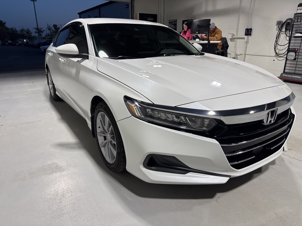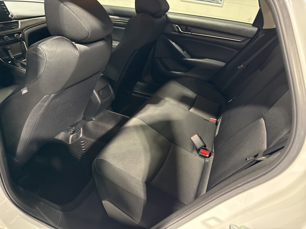 White 2021 Clean CARFAX. Honda Accord LX FWD CVT 1.5T I4 DOHC 16V Turbocharged VTEC Black Cloth, 4 Speakers, 4-Wheel Disc Brakes, ABS brakes, Adaptive Cruise Control: Adaptive Cruise Control (ACC) with Low-Speed Follow, Air Conditioning, Alloy wheels, AM/FM radio, Apple CarPlay/Android Auto, Auto High-beam Headlights, Automatic temperature control, Brake assist, Bumpers: body-color, Cloth Seat Trim, Delay-off headlights, Driver door bin, Driver vanity mirror, Dual front impact airbags, Dual front side impact airbags, Electronic Stability Control, Emergency communication system: HondaLink, Exterior Parking Camera Rear, Forward collision: Collision Mitigation Braking System (CMBS) + FCW mitigation, Four wheel independent suspension, Front anti-roll bar, Front Bucket Seats, Front Center Armrest, Front dual zone A/C, Front reading lights, Fully automatic headlights, Illuminated entry, Knee airbag, Lane Departure Warning System, Low tire pressure warning, Occupant sensing airbag, Outside temperature display, Overhead airbag, Overhead console, Panic alarm, Passenger door bin, Passenger vanity mirror, Power door mirrors, Power steering, Power windows, Radio data system, Radio: 160-Watt AM/FM Audio System, Rear anti-roll bar, Rear seat center armrest, Rear window defroster, Remote keyless entry, Security system, Speed control, Speed-sensing steering, Speed-Sensitive Wipers, Steering wheel mounted audio controls, Tachometer, Telescoping steering wheel, Tilt steering wheel, Traction control, Trip computer, Variably intermittent wipers, Wheels: 17" Silver-Painted Alloy, Black Cloth.