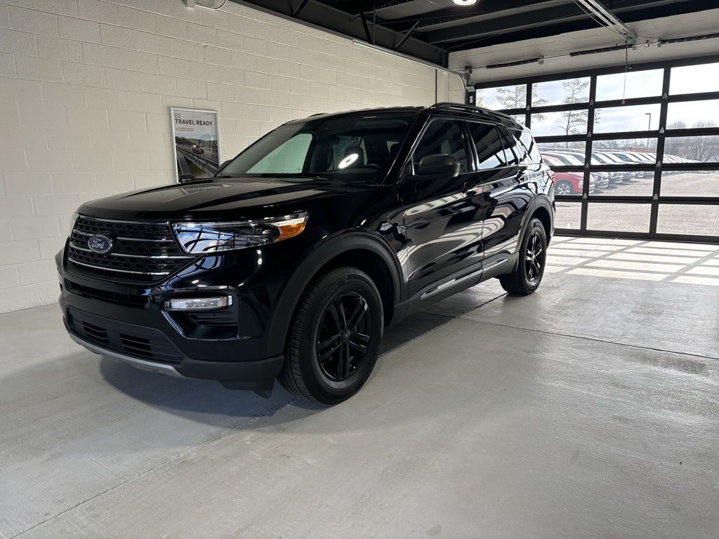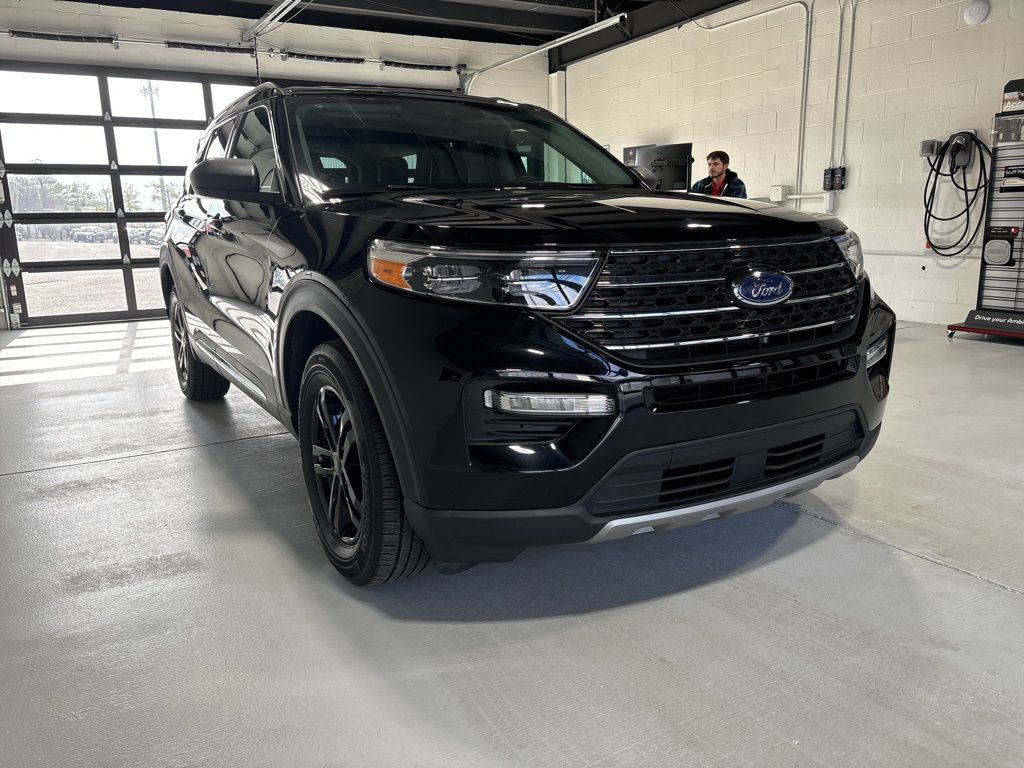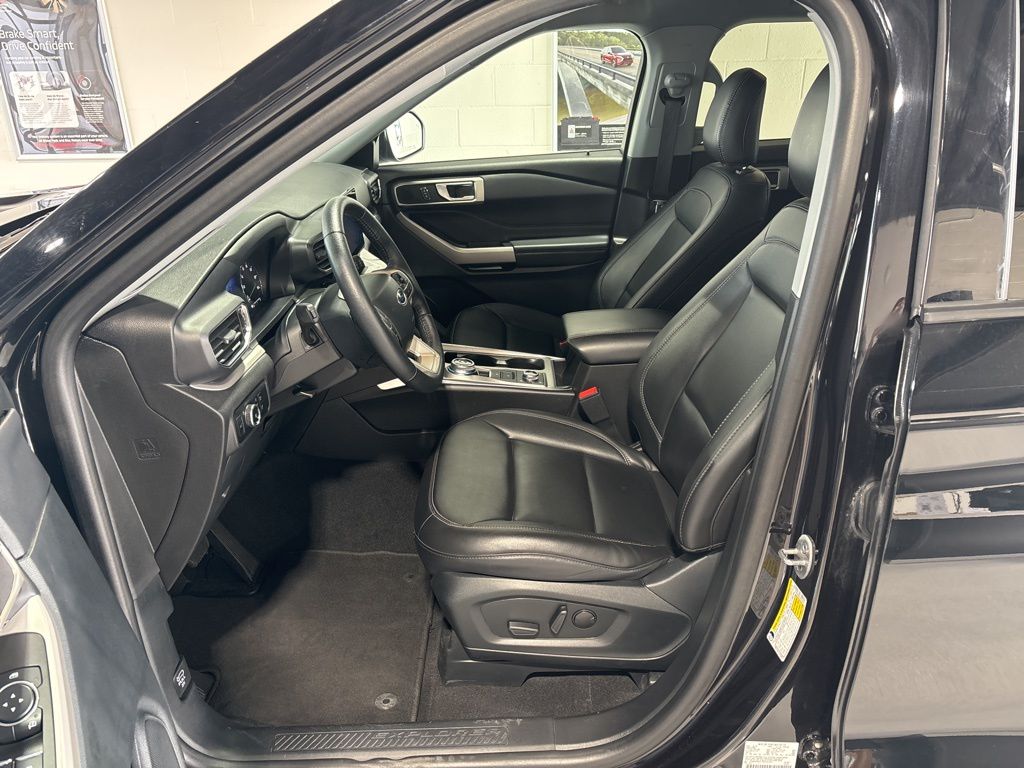 Black Metallic 2024 Ford Explorer XLT 4WD 10-Speed Automatic 2.3L EcoBoost I-4 4WD, 2nd Row 35/30/35 Bench w/E-Z Entry & Armrest, 3.58 Non-Limited-Slip Rear Axle Ratio, 3rd row seats: bench, 4-Wheel Disc Brakes, 4G LTE Wi-Fi Hotspot Credit, 6 Speakers, ABS brakes, Acoustic-Laminated Front Side Windows, Air Conditioning, Alloy wheels, AM/FM radio: SiriusXM, AM/FM Stereo, Auto High-beam Headlights, Automatic temperature control, Brake assist, Bumpers: body-color, Compass, Delay-off headlights, Driver door bin, Driver vanity mirror, Dual front impact airbags, Dual front side impact airbags, Electronic Stability Control, Emergency communication system: SYNC 3 911 Assist, Equipment Group 202A, Exterior Parking Camera Rear, FordPass Connect, Four wheel independent suspension, Front anti-roll bar, Front Bucket Seats, Front Center Armrest, Front dual zone A/C, Front License Plate Bracket, Front reading lights, Fully automatic headlights, Heated ActiveX Captain's Chairs, Heated door mirrors, Heated front seats, Heated Steering Wheel, Heated Unique Cloth Captain's Chairs, Illuminated entry, Knee airbag, Leather steering wheel, LED Fog Lamps, Low tire pressure warning, Occupant sensing airbag, Outside temperature display, Overhead airbag, Overhead console, Panic alarm, Passenger door bin, Passenger vanity mirror, Power door mirrors, Power driver seat, Power Liftgate, Power passenger seat, Power steering, Power windows, Rear air conditioning, Rear anti-roll bar, Rear Auxiliary Controls Credit, Rear reading lights, Rear window defroster, Rear window wiper, Remote keyless entry, Remote Start System, SecuriCode Keyless Entry Keypad, Security system, Speed control, Speed-sensing steering, Speed-Sensitive Wipers, Split folding rear seat, Spoiler, Steering wheel mounted audio controls, SYNC 3 Communications & Entertainment System, SYNC 3/Apple CarPlay/Android Auto, Tachometer, Telescoping steering wheel, Tilt steering wheel, Traction control, Trip computer, Variably intermittent wipers, Wheels: 18" 5-Spoke Silver-Painted Aluminum, 4WD.