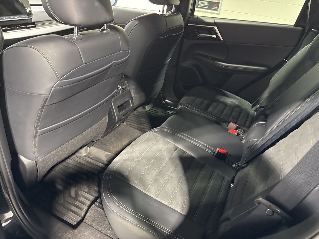 Black 2024 Clean CARFAX. Mitsubishi Outlander SE Black Edition FWD CVT 2.5L 4-Cylinder DOHC ABS brakes, Active Cruise Control, Alloy wheels, Electronic Stability Control, Front dual zone A/C, Heated door mirrors, Heated Front Bucket Seats, Heated front seats, Illuminated entry, Low tire pressure warning, Navigation System, Power Liftgate, Power moonroof, Remote keyless entry, Traction control.