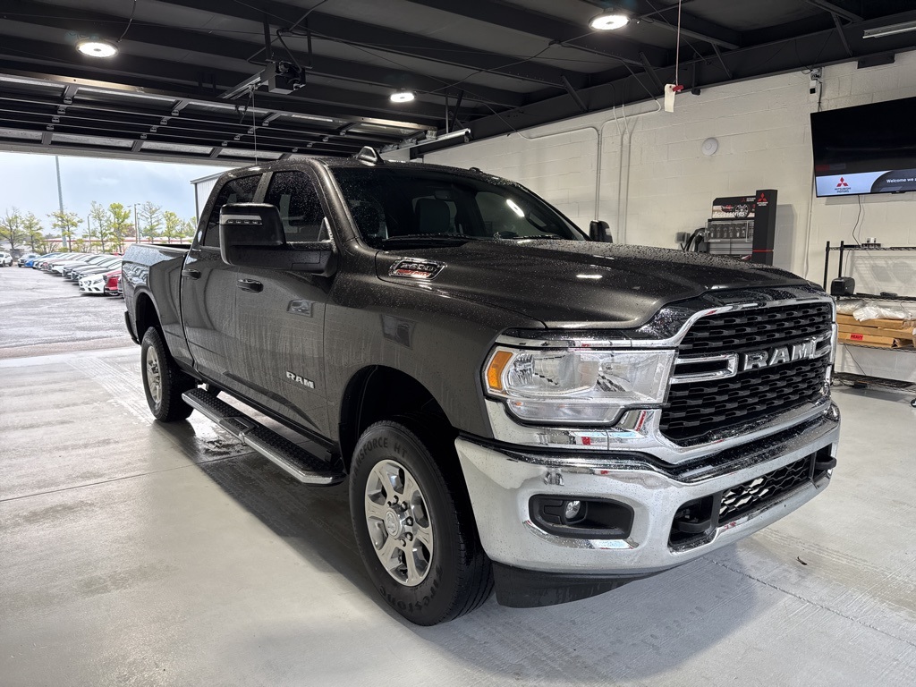 Granite Crystal Metallic Clearcoat 2024 Clean CARFAX. Ram 2500 Big Horn 4WD 8-Speed Automatic 6.4L V8 2 Way Rear Headrest Seat, 2nd Row In Floor Storage Bins, 3.73 Axle Ratio, 4 Way Front Headrests, 4-Wheel Disc Brakes, 40/20/40 Split Bench Seat, 4G LTE Wi-Fi Hot Spot, 6 Speakers, 8.4" Touchscreen Display, ABS brakes, Active Noise Control System, Air Conditioning, Apple CarPlay, Auto Power-Folding Mirrors, Big Horn IP Badge, Black Exterior Mirrors, Bluetooth Handsfree Phone & Audio, Brake assist, Bumpers: chrome, Center Hub, Center Stack Storage Drawer, Chrome Flat Cab-Length Side Steps, Cloth 40/20/40 Bench Seat, Compass, Connectivity - US/Canada, Delay-off headlights, Driver door bin, Dual front impact airbags, Dual front side impact airbags, Dual Glove Boxes, Electronic Stability Control, Electronically Controlled Throttle, Emergency communication system: SiriusXM Guardian, Exterior Mirrors Courtesy Lamps, Exterior Mirrors w/Heating Element, Exterior Mirrors w/Supplemental Signals, Foam Bottle Insert (Door Trim Panel), Footwell Courtesy Lamp, For Details, Visit DriveUconnect.com, For More Info, Call 800-643-2112, Forward & Reverse Utility Lights, Front anti-roll bar, Front Armrest w/Cupholders, Front Center Armrest w/Storage, Front Center Seat Cushion Storage, Front Fog Lamps, Front License Plate Bracket, Front reading lights, Front Seat Back Map Pockets, Fully automatic headlights, Global Telematics Box Module (TBM), Glove Box Lamp, Google Android Auto, GPS Antenna Input, Heated door mirrors, Illuminated entry, Integrated Center Stack Radio, Integrated Voice Command w/Bluetooth, Leather Wrapped Steering Wheel, Level 1 Equipment Group, Locking Lower Glove Box, Low tire pressure warning, Manual Adjust 4-Way Driver Seat, Manual Adjust 4-Way Front Passenger Seat, Manufacturer's Statement of Origin, Mirror Running Lights, Occupant sensing airbag, Outside temperature display, Overhead airbag, Overhead console, Panic alarm, ParkView Rear Back-Up Camera, Passenger door bin, Passenger vanity mirror, Power 2-Way Driver Lumbar Adjust, Power Adjust 8-Way Driver Seat, Power Adjust Mirrors, Power Adjustable Convex Aux Mirrors, Power door mirrors, Power Heated Fold Telescope Mirrors, Power steering, Power Telescoping Mirrors, Power windows, Premium Cloth 40/20/40 Bench Seat (DISC), Quick Order Package 2GZ Big Horn, Radio data system, Radio: Uconnect 3 w/5" Display, Radio: Uconnect 5 W w/8.4" Display, Rear 60/40 Folding Seat, Rear anti-roll bar, Rear Dome w/On/Off Switch Lamp, Rear Folding Seat, Rear seat center armrest, Rear step bumper, Remote keyless entry, Remote USB Port - Charge Only, Selectable Tire Fill Alert, SiriusXM Radio Service, SiriusXM Satellite Radio, Speed control, Steering Wheel Mounted Audio Controls, Storage Tray, Tachometer, Tilt steering wheel, Tip Start, Tow Hooks, Traction control, Trip computer, Turn signal indicator mirrors, Variably intermittent wipers, Voltmeter, Wheels: 18" x 8.0" Polished Aluminum, Wheels: 18" x 8.0" Steel Chrome Clad.